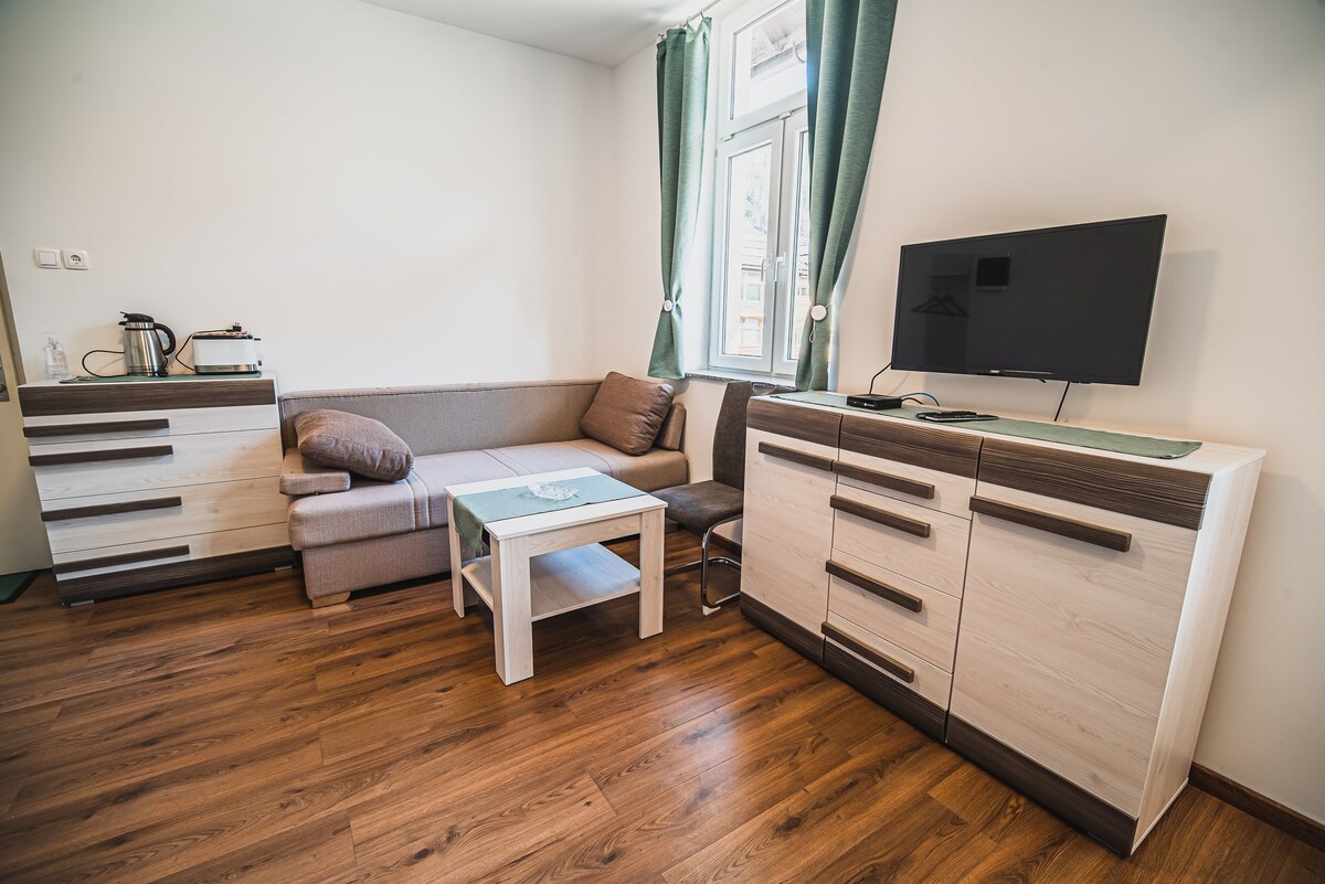 Un bellissimo loft nel centro della piazza, che vanta una ricca storia… in passato c'era una locanda che ospitava persone vicine e lontane… e ora le abbiamo ridato la vita. Cerchiamo di far sentire i nostri ospiti a prendersi del tempo per se stessi e a divertirsi con noi. Quindi ora abbiamo aggiunto una sauna finlandese all'offerta, che è un ottimo relax per il corpo e lo spirito. Vieni a trovarci, non te ne pentirai