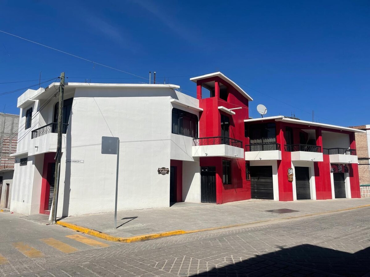 Benvenuto a Mitla! Vogliamo condividere con te il miglior panorama di Oaxaca!!! La nostra casa ha una posizione privilegiata... di fronte al sito archeologico di Mitla. Grazie a questo, potrai vivere un'esperienza unica! La proprietà ha 3 livelli. Dotato di cancello elettrico e parcheggio. Disponiamo di 3 camere confortevoli: quella principale con balcone e vista frontale sull'area archeologica, così come il nostro salotto. Oltre alla sala da pranzo, alla cucina e alla terrazza al 3 ° piano