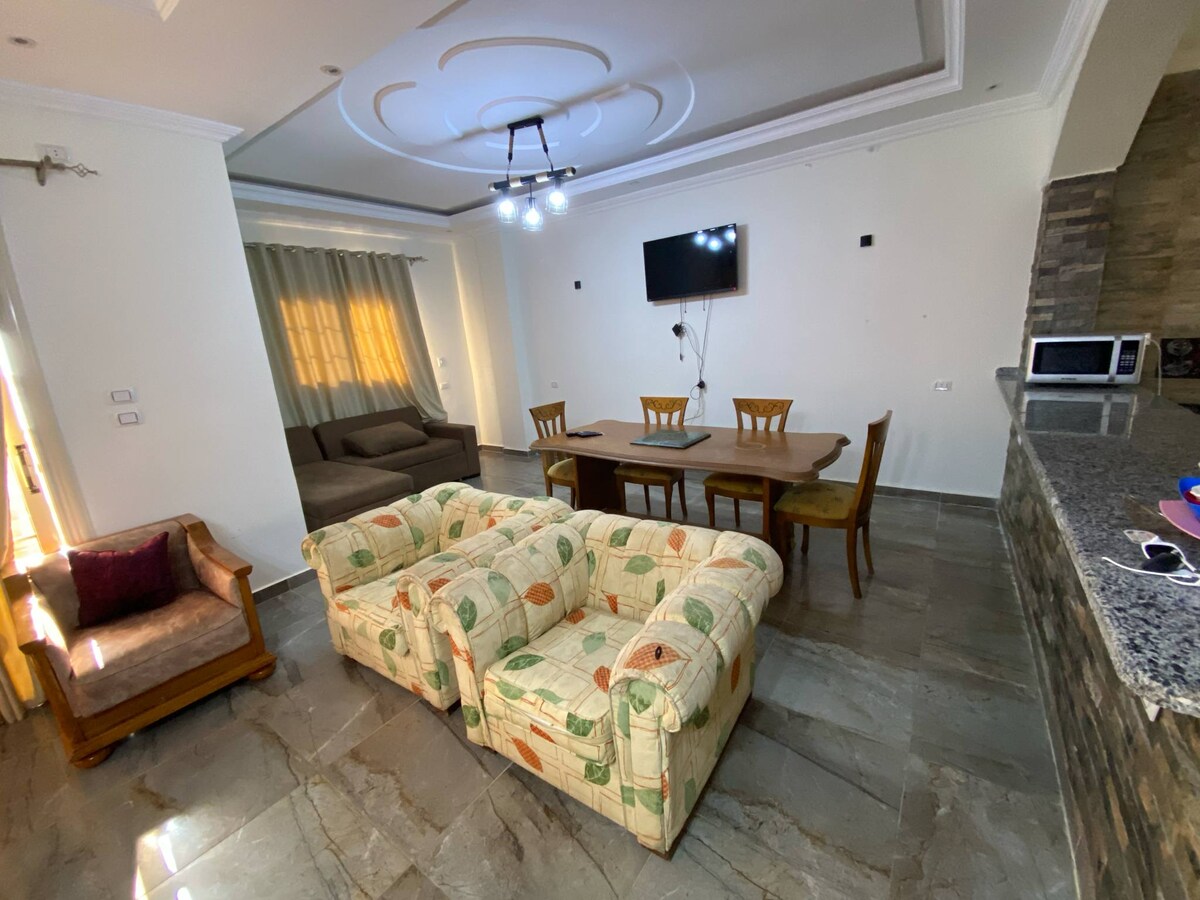 Con questo alloggio in centro a Sedi Abdel rahman, vicino alla baia di Haceinda, a 5 minuti dalla nuova città di Alamain e dal porto turistico, sarai vicino a tutto. Può ospitare fino a 4 adulti o una piccola famiglia.