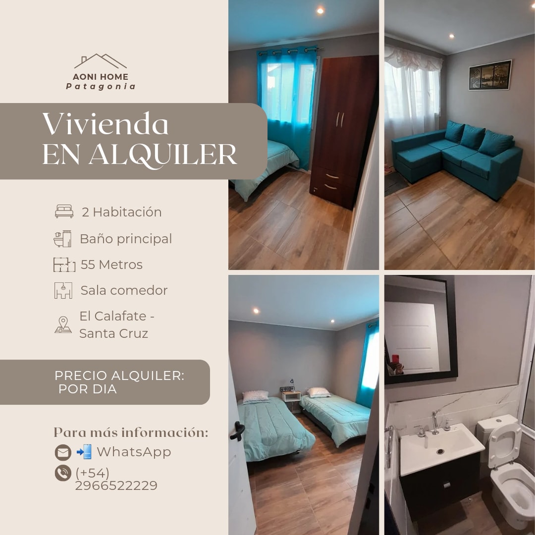 Dúplex único en El Calafate. Diseño, calidad y confort. Cuenta con todo lo necesario para que tu estadía sea la mejor, cocina y baño totalmente equipados, calefacción por piso radiante, tv, wifi, lavadero. En su planta alta cuenta con dos habitaciones, con sommier de primera calidad (tw o mat), balcón con una hermosa vista al lago argentino y cordillera, ambas habitaciones con placard, mantas y almohadas adicionales. Disponible para 4 huéspedes, consultar adicionales.
