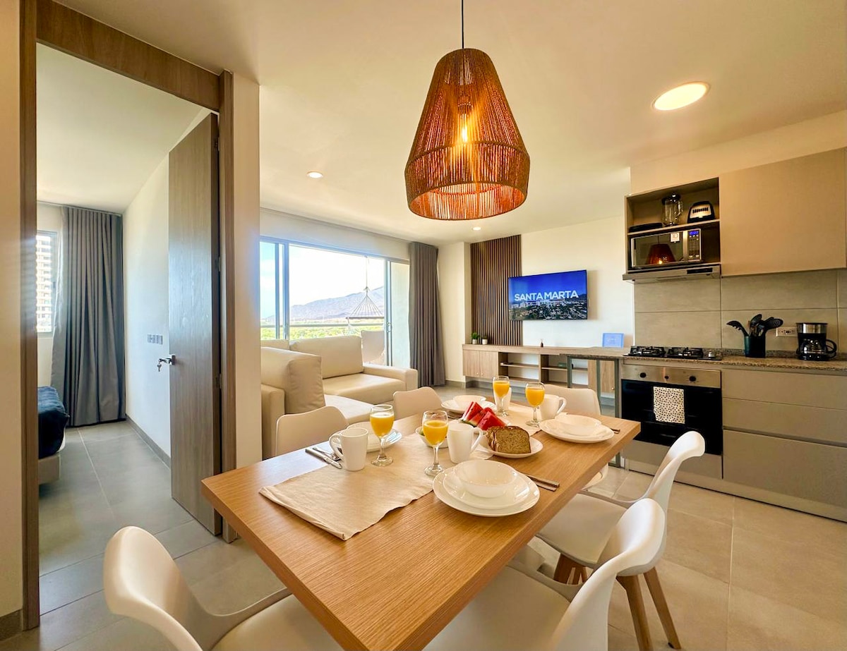 Goditi un'esperienza indimenticabile a Santa Marta con la famiglia o gli amici in un bellissimo Beach Club. Troverai: 🛁 Vasche idromassaggio. 🛏️ 3 camere da letto con letti matrimoniali e singoli. 🍳 Cucina ampiamente attrezzata per preparare qualsiasi cosa ti possa servire. 🌅 Balcone privato con vista sull'oceano. 🏖️ Accesso diretto alla spiaggia 🏊 Edificio con 4 piscine. 🏋️ Palestra. 🧖 Spa e aree umide. 🍽️ Ristorante con opzione colazione. 👩💻 Area di coworking. 🔐 Ambiente esclusivo e sicuro. Vieni a divertirti! 🌴