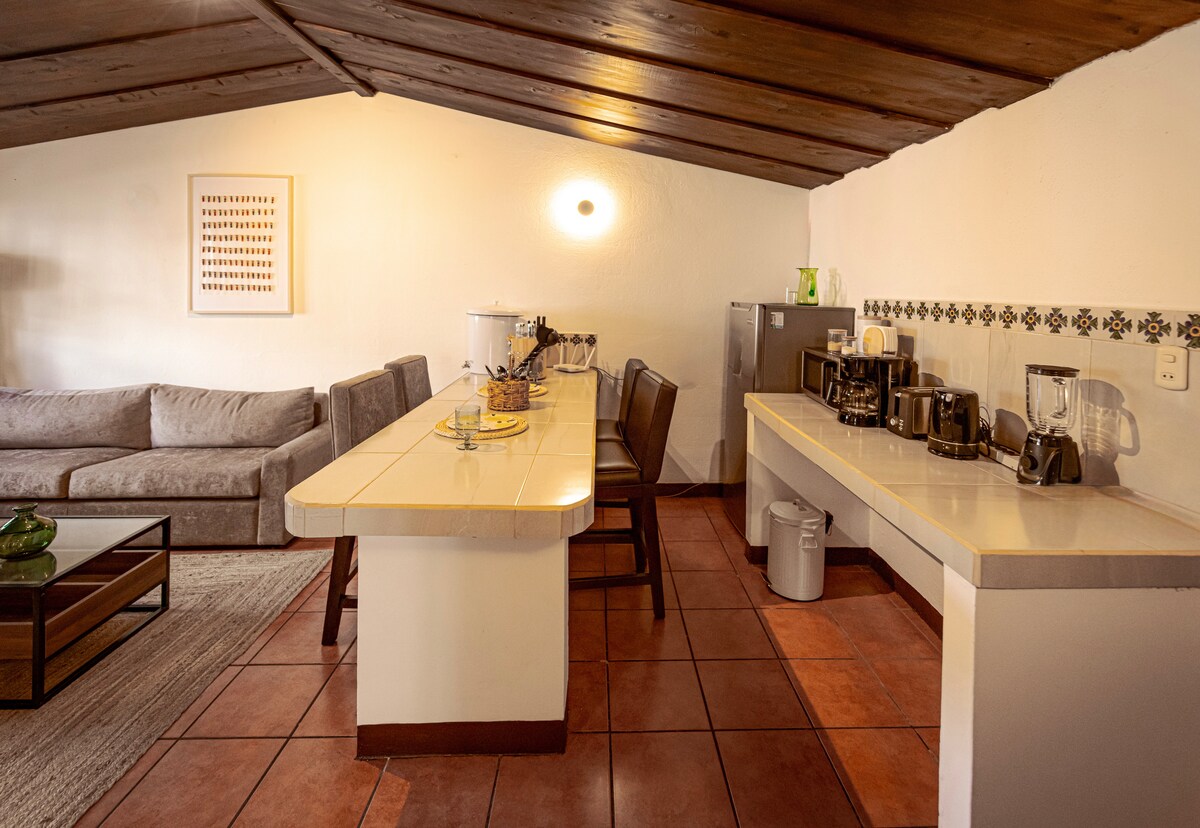 È un bellissimo appartamento situato all'interno dei locali di un prestigioso hotel ad Antigua. Si trova a 2 isolati dal parco centrale. Ci sono ristoranti , boutique, gioiellerie a pochi passi dalla struttura È tranquillo e sicuro. Disponiamo di una propria sicurezza
