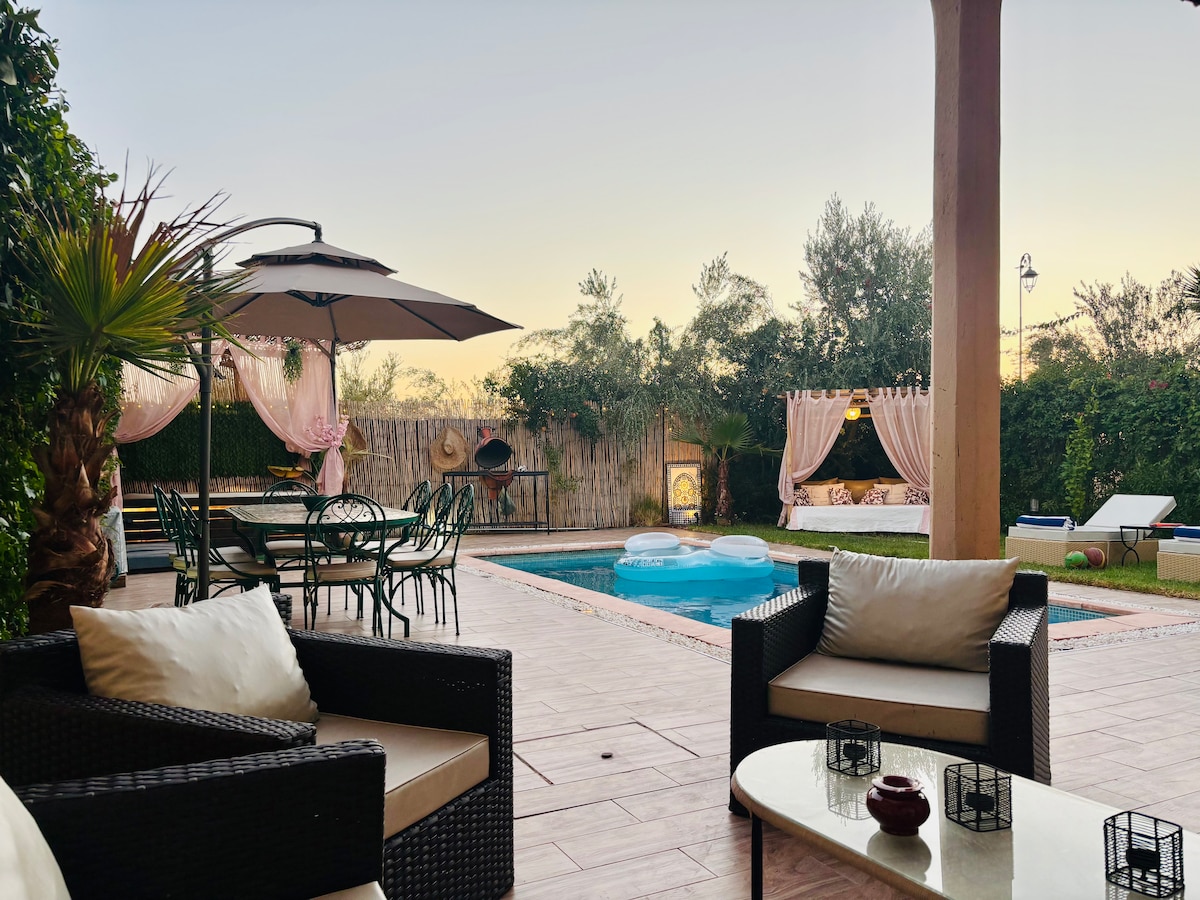 Villa con piscina senza di fronte vicino a Marrakech Molto ben attrezzata e ben pulita. Posto molto tranquillo e trenquille all'esterno di Marrakech accanto alle guest house e vicino a tutto comodità.