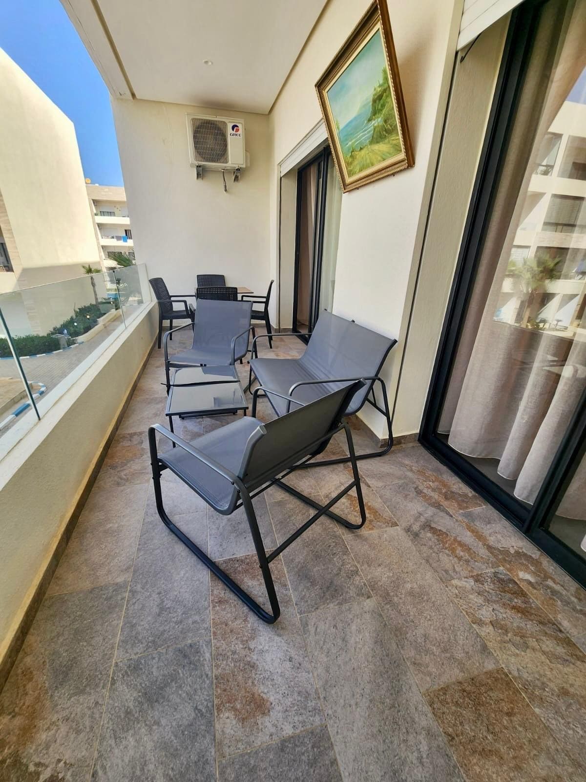 Un appartamento molto bello, situato nel Residence Ebla, uno dei luoghi migliori di Mansouria - Mohamedia. Calma e sicurezza Con il suo parcheggio sotterraneo, una grande piscina. Ristoranti, Carrefour Market e Caffetterie sono tutti a soli 10 minuti a piedi sotto le palme. La spiaggia di Sablette, che è la migliore spiaggia di Mohamedia, è a soli 5 minuti di auto. L'appartamento è molto ben attrezzato, puoi cucinare il tuo pasto, prendere il sole sulle terrazze e persino goderti la vista sull'ampio terreno verde vicino al residence.