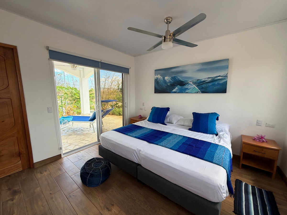 Clean and bright home located in San Juan Del Sur nestled among lush tropical trees. Just a 5 min walk to the beach and 10 - 15 min walk to town along the beach. Close to the action but far enough for a quiet sleep. The home is an oasis where you can return after a day of exploring to have a glass of wine on the patio, swim in the pool, eat on the open rooftop patio, relax on the hammock or just watch a movie.