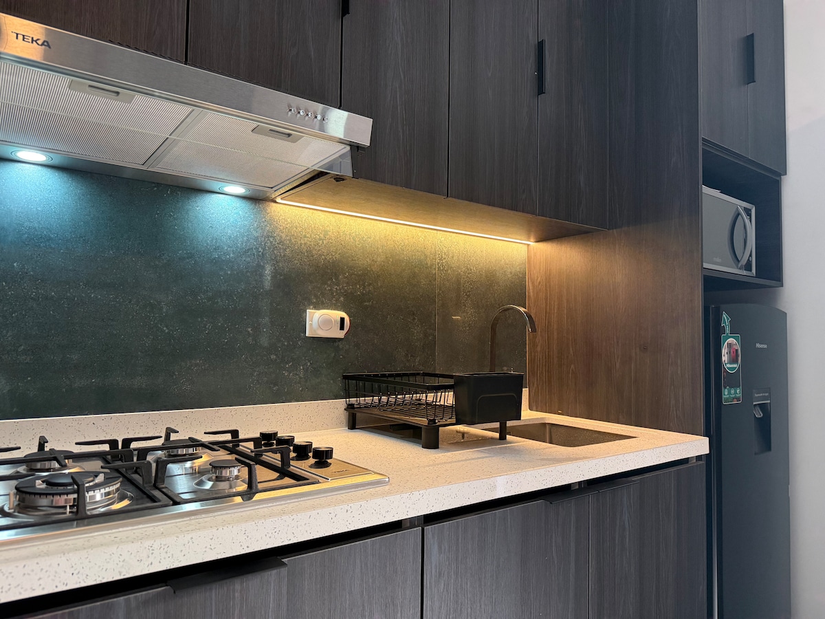 Un espacio compacto y práctico, diseñado para ofrecer lo esencial con comodidad y estilo. Este departamento tipo estudio cuenta con cocineta equipada, baño completo, una cama matrimonial y un sofá cama, ideal para familias parejas o personas que viajan ligero. Incluye internet, climatización y Smart TV, todo a solo minutos del Consulado de EE. UU. Perfecto para estancias cortas con comodidad práctica.