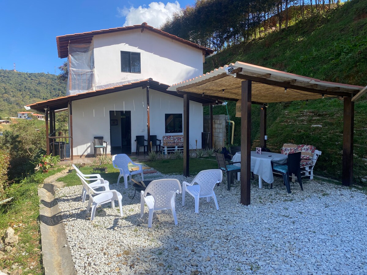 Vuoi trovare un rifugio unico? Ecco questa graziosa mini casa di campagna, a soli 60 minuti da Medellín. Con 3 camere confortevoli + 1 sofacama, puoi condividere l'esperienza di campagna della coppia o con gli amici. Goditi l'area del focolare per quelle serate speciali, prepara piatti deliziosi al barbecue o nella cucina completamente attrezzata! Inoltre, rilassati sull'amaca al mattino, goditi letti super confortevoli ed esplora i sentieri verdi che circondano questa proprietà.