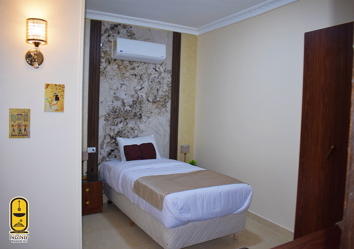 Solpyramid hotel located near wonders of the ancient world at the pyramids area and offer 20 rooms., gift shop, free Wi-Fi, Air conditioning, refrigerated private stoked Mini Bar, in room tea/coffee facility in daily refreshment basis, free safe box, dressing table, television 100% Egyptian cotton bed covers & linens. Location: close to pyramids area