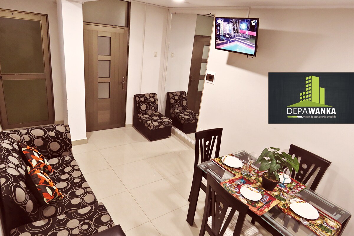 Appartamento nel cuore di Huancayo Goditi una posizione privilegiata, a pochi passi da Real Plaza e Mall Plaza, parchi, ristoranti e tutto ciò che serve per muoversi comodamente. Zona sicura e tranquilla, per godersi al meglio il soggiorno. L'appartamento dispone di: Cucina completamente attrezzata con stoviglie ed elettrodomestici. Accogliente soggiorno con divano, poltrone e TV Camera da letto confortevole e privata. Spazio di lavoro Ti sentirai come a casa tua!