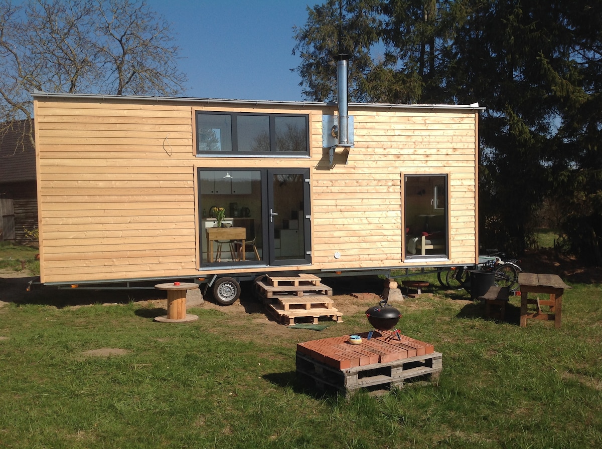 La Tiny House Deluxe attende la vostra visita. Una casa da sogno, luminosa e arredata in modo moderno e accogliente. Un camino in inverno e in primavera colazione all'aperto. Su una superficie utile di circa 27 mq possono trovare posto 2 adulti e uno o due bambini. Una bella vista dalla finestra panoramica su prati e boschi delizia l'occhio. La cucina è dotata di tutto il necessario, un barbecue all'aperto, lettini, posti a sedere all'aperto e, naturalmente, il braciere... C'è tutto!