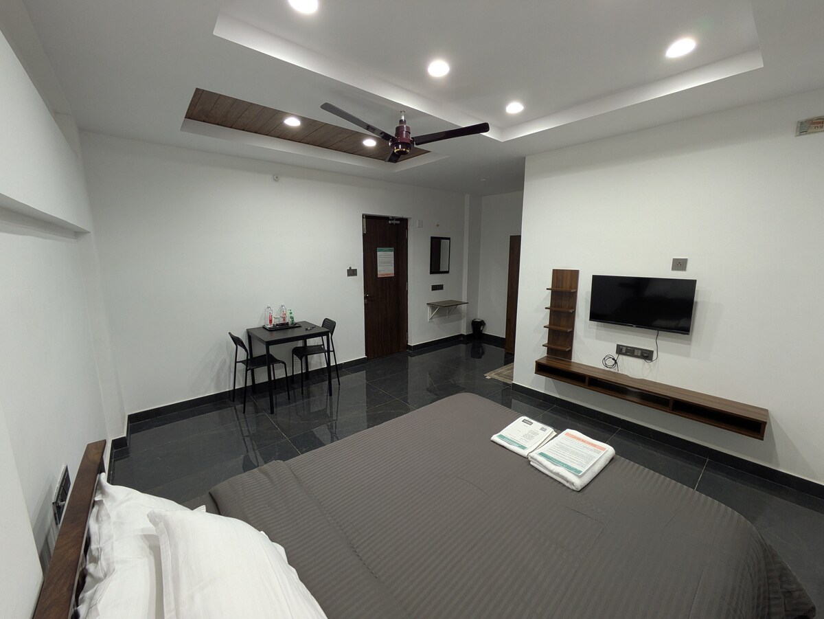 Whether you're visiting for work, studies, or leisure, our premium accommodation offers meticulously maintained rooms with a strong focus on hygiene, comfort & safety. Just a 5-minute walk from the prestigious IIMB and right on the Bannerghatta Main Rd. Perfect for short stays and extended visits. A bus stop is located right in front of the property & excellent availability of public transport options ensures ease of commute. Stay at Sudhanva for a truly unforgettable stay experience!
