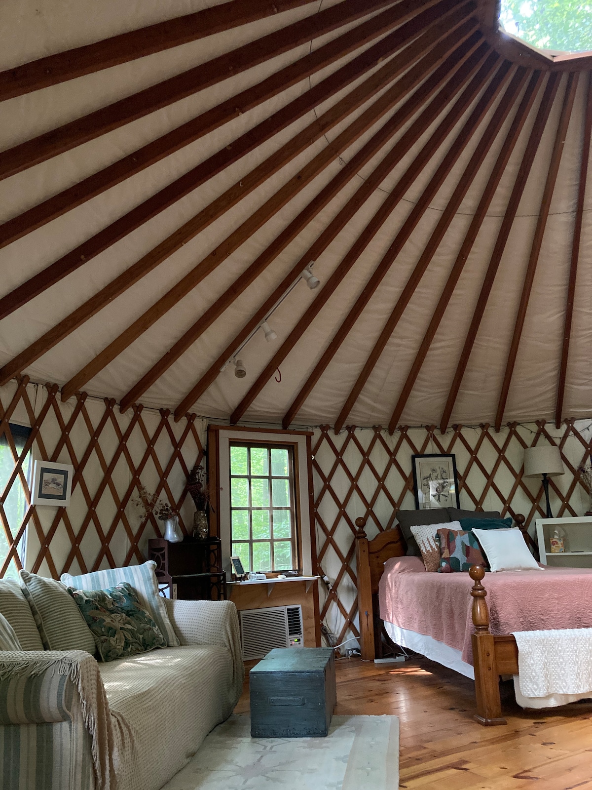La nostra yurta (9 metri di diametro) è rustica, bella, tranquilla, immersa nel bosco con terrazza che si affaccia sul laghetto. Ideale per coppie e piccole famiglie (non a prova di bambino). Include vasca idromassaggio e Poetry Walk. I letti sono futon. Da giugno ad agosto fa caldo (non c'è aria condizionata, ma molti ventilatori), ma è molto più fresco che in città. Fa freddo da novembrea marzo (riscaldamento con stufa a legna). Mini-frigo e microonde (senza cucina/impianto idraulico). Il parcheggio e lo stabilimento balneare sono a 2 minuti a piedi (servizi igienici, lavandino, doccia). A due minuti da Saxapahaw. Leggi la descrizione per maggiori informazioni. NIENTE FESTE. Niente cani.