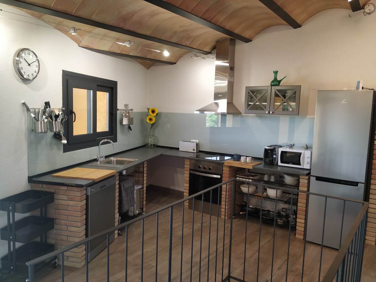 È uno spazio ben curato, progettato per staccare e riposare. Ha un ampio e bellissimo giardino, curato nei dettagli e con diversi spazi per rilassarsi e divertirsi: amache, un piccolo stagno, un tavolo per mangiare o parlare all'ombra, una piscina... Dietro di essa ci sono montagne, una spiaggia a 10 minuti (Costa Brava), fiumi e parchi naturali (Aiguamolls e Cap de Creus). In un bellissimo e tranquillo villaggio, puoi scegliere tra la tranquillità o il trambusto del turismo nella zona costiera.