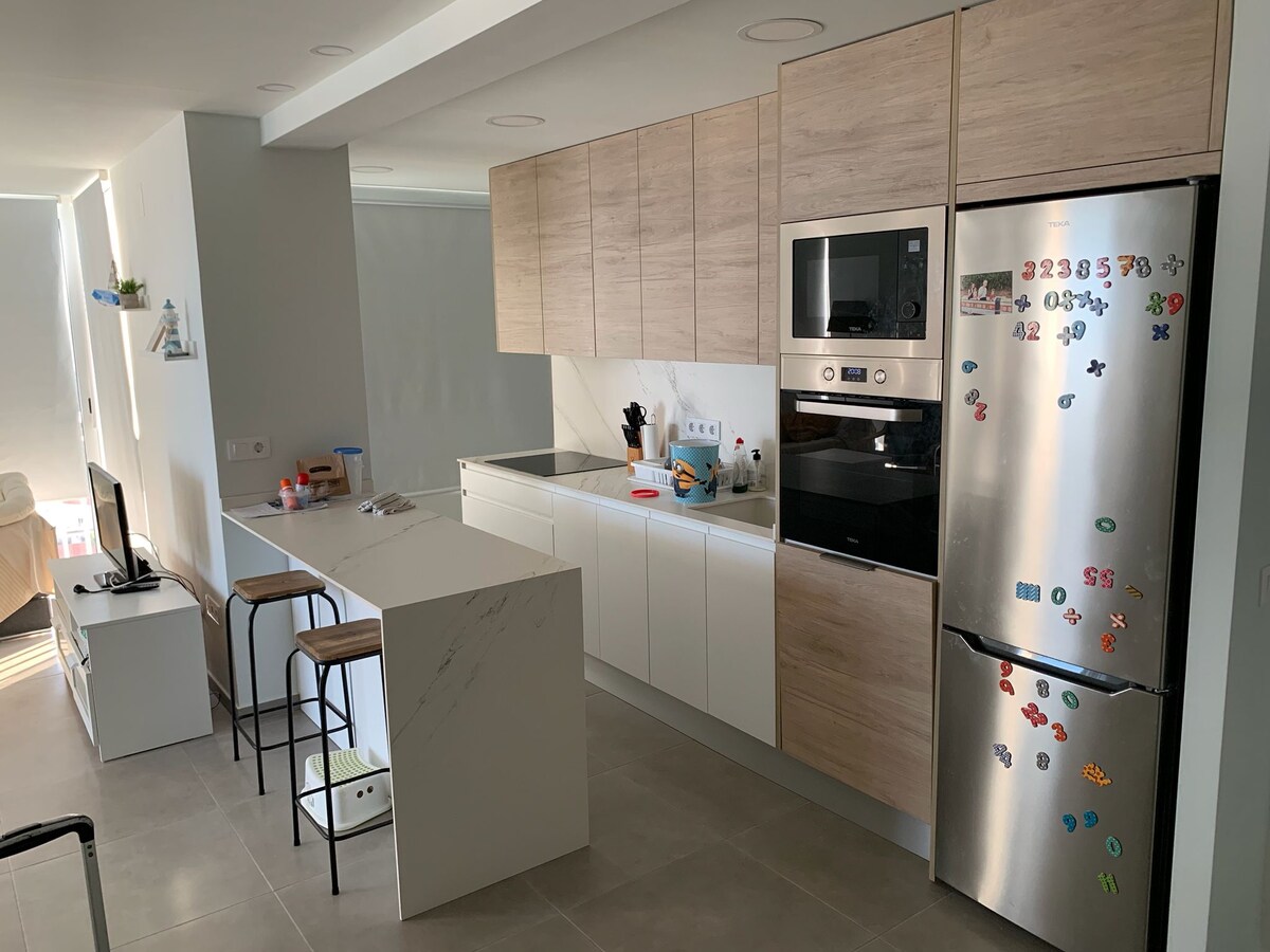 Rilassati e stacca la spina in questo alloggio tranquillo ed elegante. Appartamento di 90m progettato per farti godere le tue vacanze, in un'atmosfera rilassata con tutto il necessario in modo che tu debba solo preoccuparti di portare le tue cose personali. La sua posizione ti permette di staccare dall'auto poiché puoi andare a fare la spesa a piedi, goderti le terrazze alla moda, i ristoranti, le gelaterie ecc...o semplicemente goderti la sua terrazza di fronte al mare, il lungomare e la pista ciclabile. Consigliatissimo.