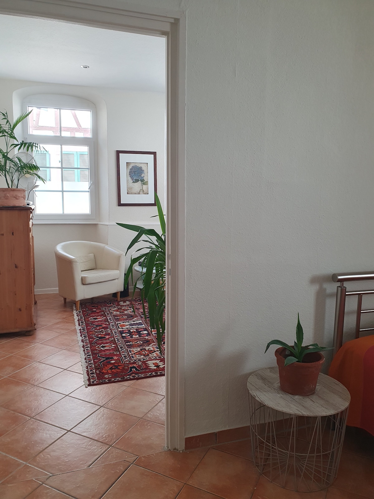 Per gli ospiti nel Rheingau, il nostro nuovo, bellissimo appartamento a Eltville è prenotabile. In una posizione tranquilla e centrale di Eltville (a pochi passi dal centro storico o dal Reno), l'appartamento (dotato di doccia/WC, piccola cucina, TV) per un massimo di due persone con il suo ingresso indipendente e una piccola terrazza (per una colazione all'aperto o per un pranzo/pomeriggio/sera) offre il punto di partenza ideale per un weekend lungo nel Rheingau.