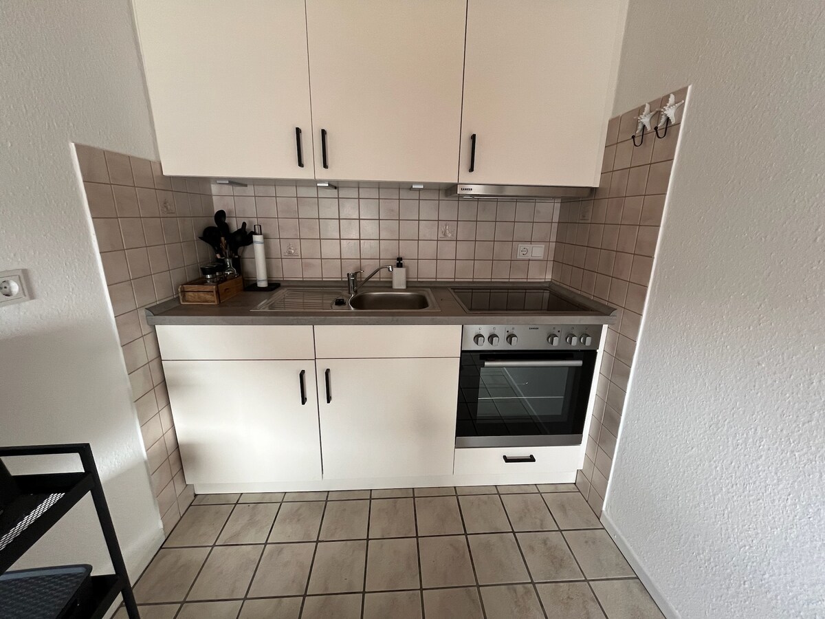 Splendido appartamento nel centro storico di Petkum (Emden). L'appartamento si trova al piano terra di una piccola casa in una tranquilla strada senza sbocco tra la vecchia chiesa del villaggio, un Gulfhof e a soli 4 minuti a piedi dal porto e dal traghetto per Ditzum. Godetevi l'ampia vista dalla diga sulla foce dell'Ems e il Dollart. Aria fresca di mare inclusa. Un punto di partenza ideale per le vostre escursioni alle isole, Ditzum, Krumhörn e alle città della Frisia orientale di Emden, Leer e Aurich.