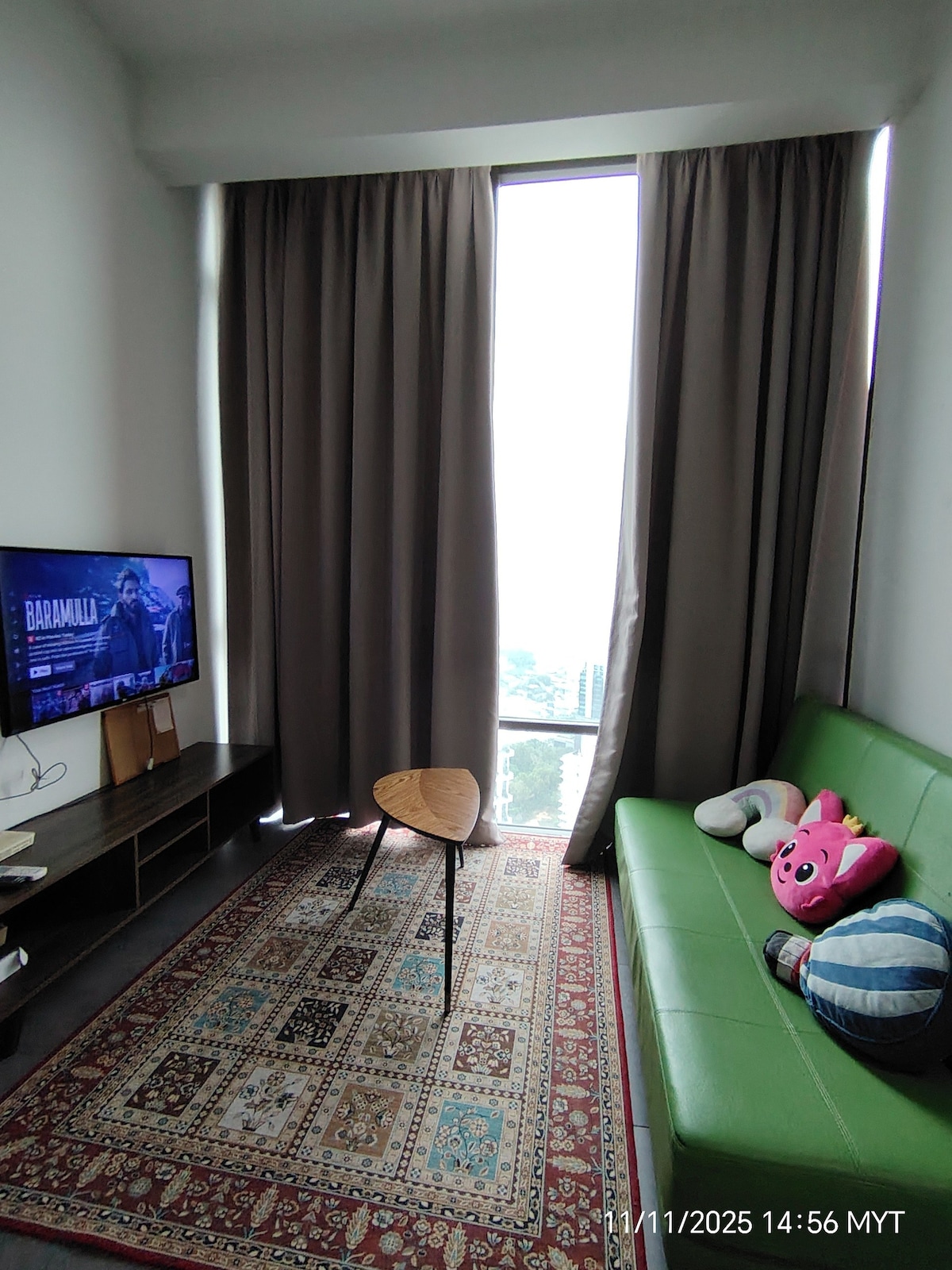Questo è un monolocale semplice ma confortevole, in cui abbiamo messo molto impegno! Forniamo film gratuiti e Wi-Fi gratuito. Oltre al letto, lo spazio è dotato di una dispensa, una piccola zona giorno e un bagno completo. La nostra unità offre una vista sullo skyline di Damansara e si possono anche vedere il PNB 118 e la torre KLCC all'estremità della collina. Questa unità consente anche consegne di cibo fino alla porta di ingresso, il che ti permette di ricevere il cibo anche se sei in pigiama!
