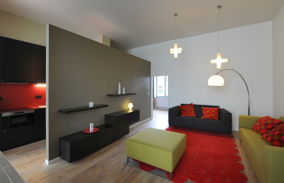 Au cœur de la cité ardente, à deux pas de la Gare des Guillemins, nous vous proposons ce loft de haut standing de 100 m2 dans un style qui allie l’élégance au charme. Dans un cadre classe et relaxant, une nuit ou un week-end en amoureux avec un bain balnéothérapie, un espace extérieur au goût exotique, une spacieuse salle de bain avec deux têtes de pluie, un lit flottant au design Italien pour un moment de détente à deux. Possibilité de décoration romantique ou personnalisée sur demande.