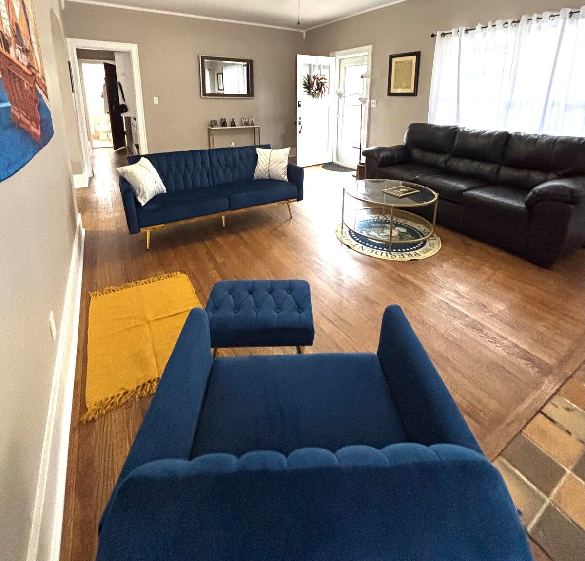 Two bedroom, one bath, 1200 sqft, adorably remodeled, fully furnished, northwest Enid home! Sit back in Enid’s historical district, centrally located five minutes from soccer, baseball fields, David Allen Ball park, http://airbnb.com/h/whitehousepresidential, and ten minutes from Vance AFB. Make this your home away from home!!! Family friendly, pets welcome w/additional fee!!
