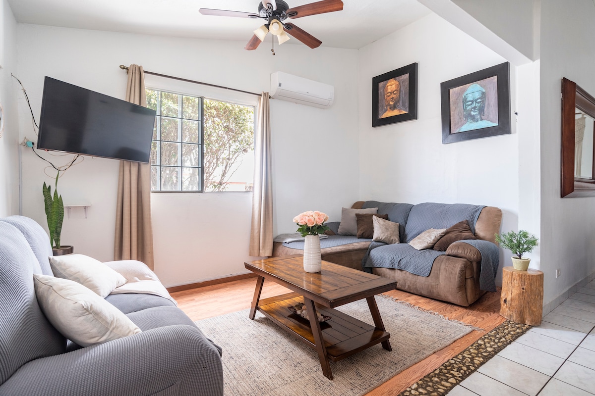 Scopri la casa perfetta lontano da casa! Goditi il comfort di questo appartamento nuovo di zecca, tranquillo e sicuro, completo di tutti i servizi essenziali. Esci nel patio o sulla terrazza e approfitta della lavanderia. Situato nel cuore della città, dista solo 7 minuti in auto dalla vivace zona turistica e offre un facile accesso alle strade principali. Inoltre, sei a soli 30 minuti dall'incantevole Valle de Guadalupe. La tua vacanza ideale ti aspetta! **Nessun parcheggio privato**