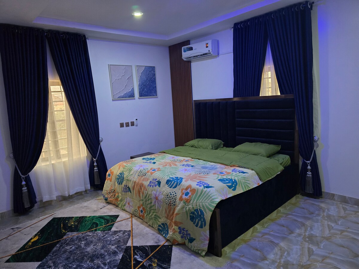 Relax in our Cozy 2-bedroom brand new apartment that sleeps up to 4 guests! Enjoy the spacious bedrooms with AC, fan,TV & Fast WI-FI, a comfy living room and cook in a fully equipped kitchen.-Free parking on premises With solar energy supplementing grid power, you'll have reliable lighting, Nestled in a great environment with dependable security, this home offers comfort and peace of mind. Just 5 minutes from the ShopRite and Enugu international Airport Book now for a worry-free and Fun stay!
