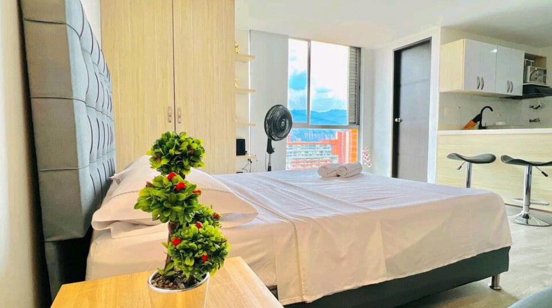 - Posizione privilegiata: nel cuore del quartiere Laureles, vicino a stazioni della metropolitana, allo stadio, a supermercati, ristoranti e alla 70. - Eccellente balcone con vista sulla città. - Wifi (300mb) Fibra Ottica. - Aria condizionata - Jacuzzi privata - Personale in loco 24 ore su 24, 7 giorni su 7, pronto ad aiutarti per tutto ciò di cui potresti aver bisogno. - Smart TV 43”, con app installate. - Cucina attrezzata con stoviglie, pentole, cucchiai, coltelli. - Letto matrimoniale (1,60 m x 1,90 m) - Prezzi trasparenti (Vedi Regole)