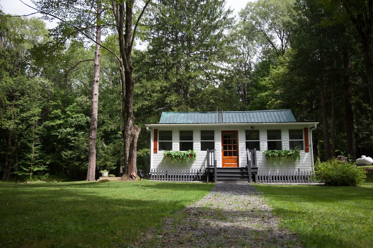 Ti sei mai chiesto come sarebbe stare in un cottage di pietra? Questa proprietà unica ha una grande storia. E 'stato costruito come una scuola di una stanza nel 1836 ed è stato attivo fino al 1914. Grande studio soggiorno, con soggiorno, camera da letto e sala da pranzo tutti combinati in un'unica grande stanza. Originali travi in castagno a vista, offrono uno spazio arioso e confortevole per rilassarsi! Piani di lavoro in pietra blu e frigorifero vintage GE degli anni '30, l'accogliente cucina offre un posto per gustare il caffè del mattino☕️