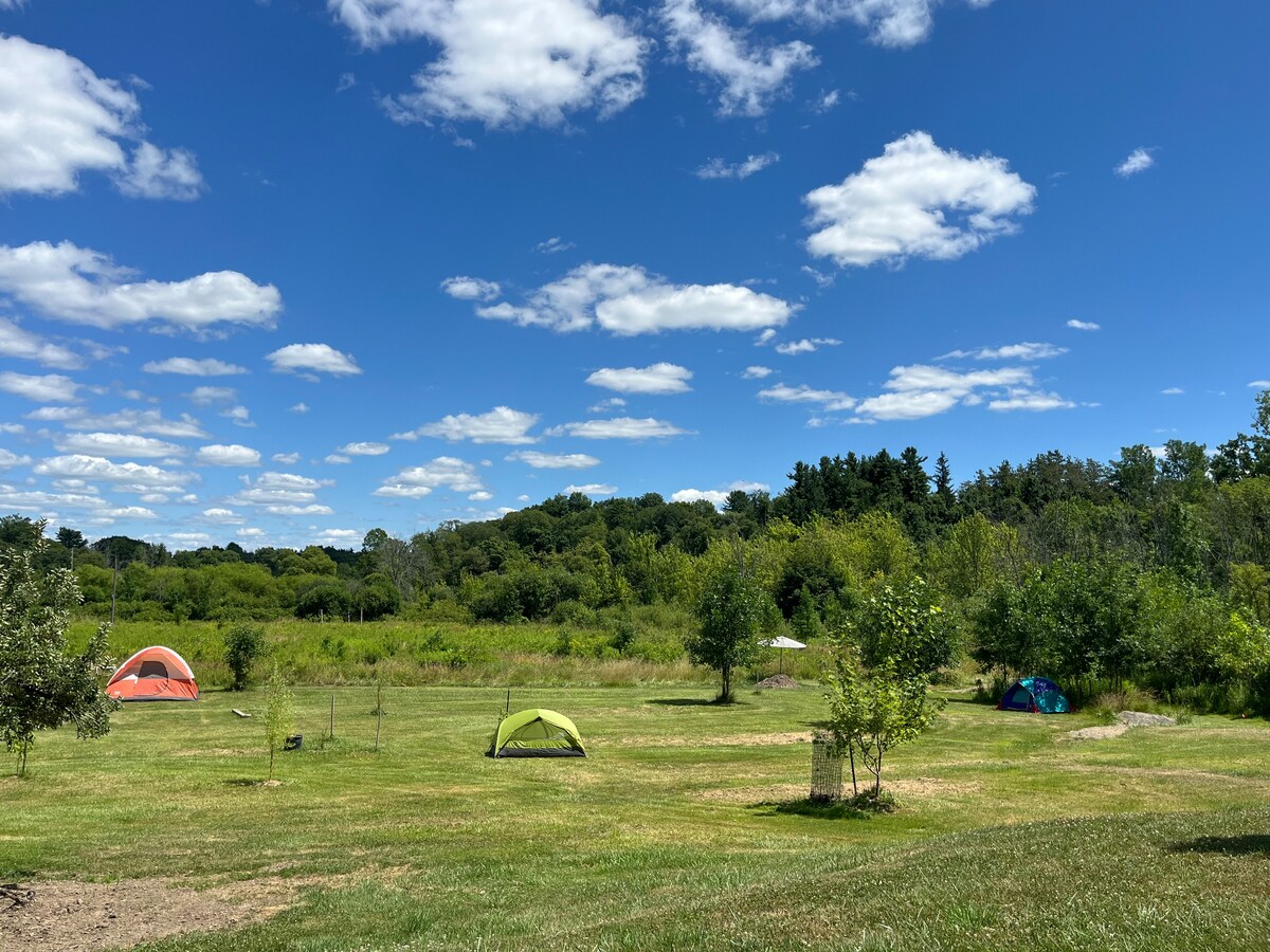 Monta la tenda in un tranquillo prato di 4 ettari, nascosto tra fiori selvatici ed erba alta. Soggiorno in tenda: scegli il tuo posto, stacca la spina e lascia che la natura ti accolga. I comfort includono: • Bagno interno condiviso • Posto auto nel vialetto • Spazi comuni: salotto con amaca, tavolo da picnic e braciere Siamo a soli 5 minuti dall'affascinante villaggio di East Aurora, dal Roycroft Campus, dal Knox Farm State Park e a soli 20 minuti dal centro di Buffalo.