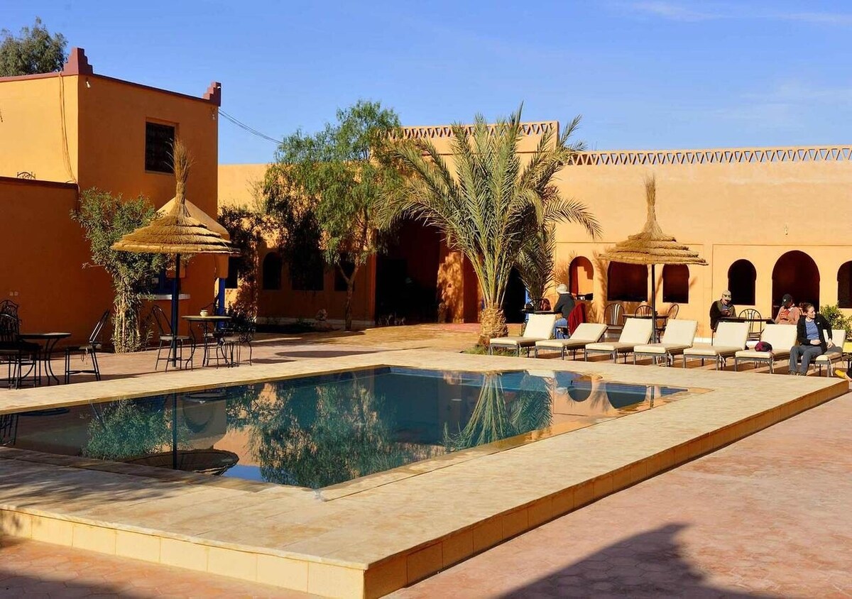 Questo posto è così magico che ti scriverà. Strategicamente situato in un'oasi, vicino al deserto, con una bella decorazione Amazigh, con un cibo tradizionale cucinato poco a poco con amore per mia moglie e con tante attività alla scoperta della nostra regione