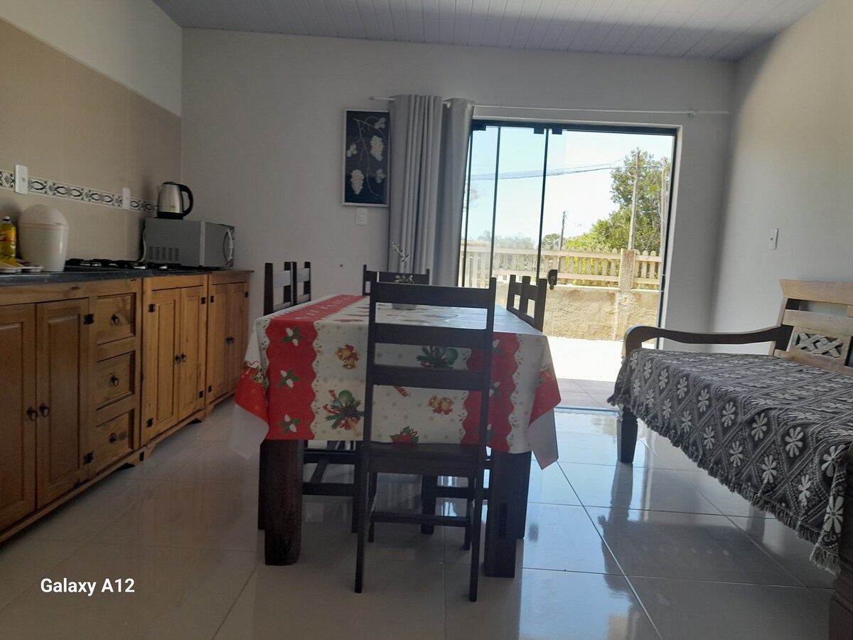 La casa è una villetta rustica che può ospitare fino a 6 persone. Al primo piano, soggiorno, bagno e cucina con stufa a legna. Al piano superiore, una grande camera da letto con un soppalco. Su entrambi i piani i balconi si affacciano su un bellissimo tramonto. Si trova a meno di 1 km da Praia Grande (una bellissima spiaggia di sabbia bianca) e da Armação de Itapocorói (una baia di pescatori artigianali, con mare calmo, ottima per la pratica dello stand-up). Vicino anche al Parco Beto Carrero, che dista solo 3 km.