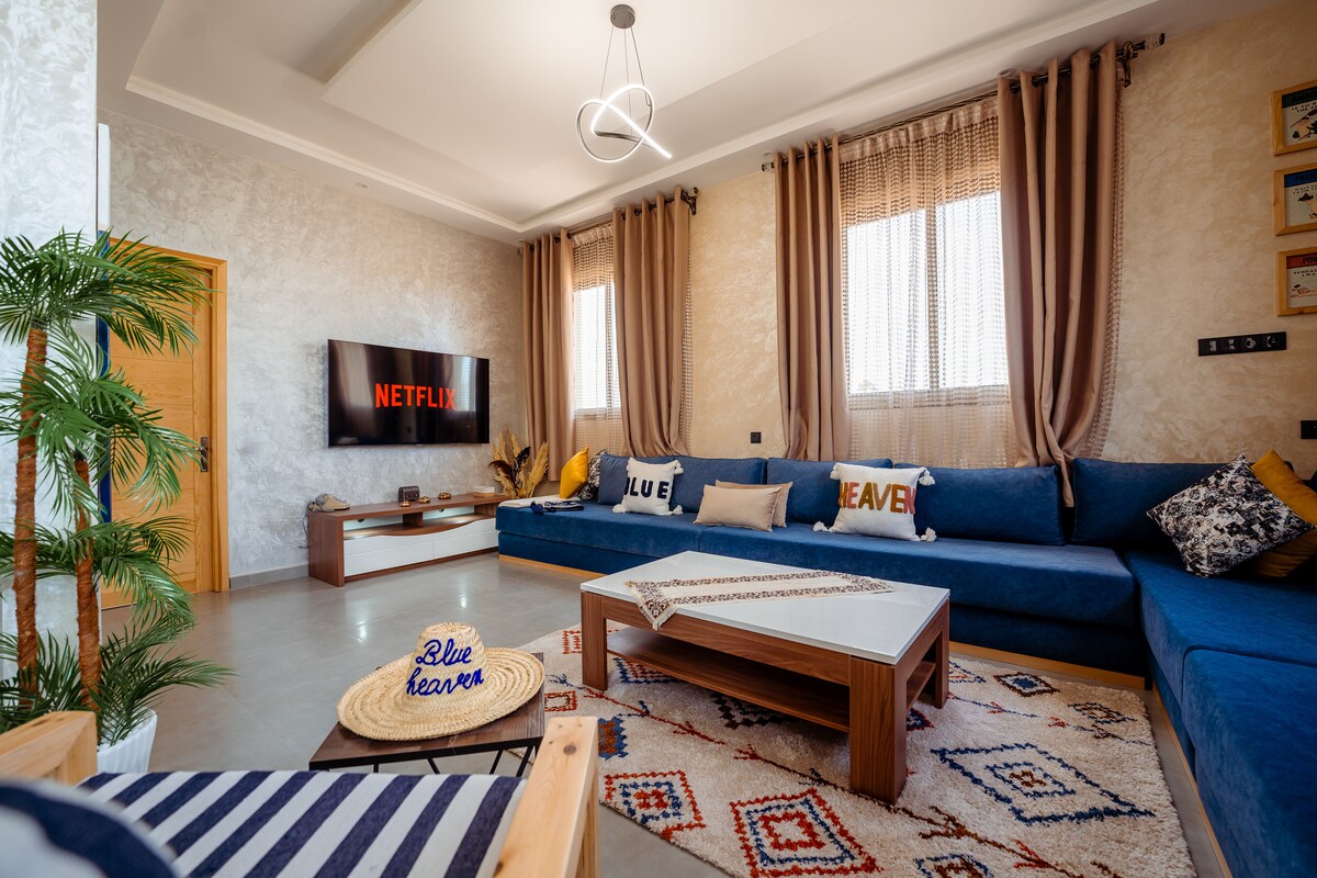 Benvenuti a Dar Aya 2, appartamento atipico di 70 m2 completamente ristrutturato con l'aiuto di artigiani locali in stile "Beldi chic" dove si mescolano comfort e arredamento raffinato. Ogni dettaglio e oggetto è stato scelto per farvi viaggiare in un Marocco autentico. Situato in una zona tranquilla e vicino a tutti i servizi è possibile raggiungere la medina e la spiaggia in 15 minuti a piedi. Al piano superiore, avrete accesso a una splendida terrazza privata con vista su Essaouira.