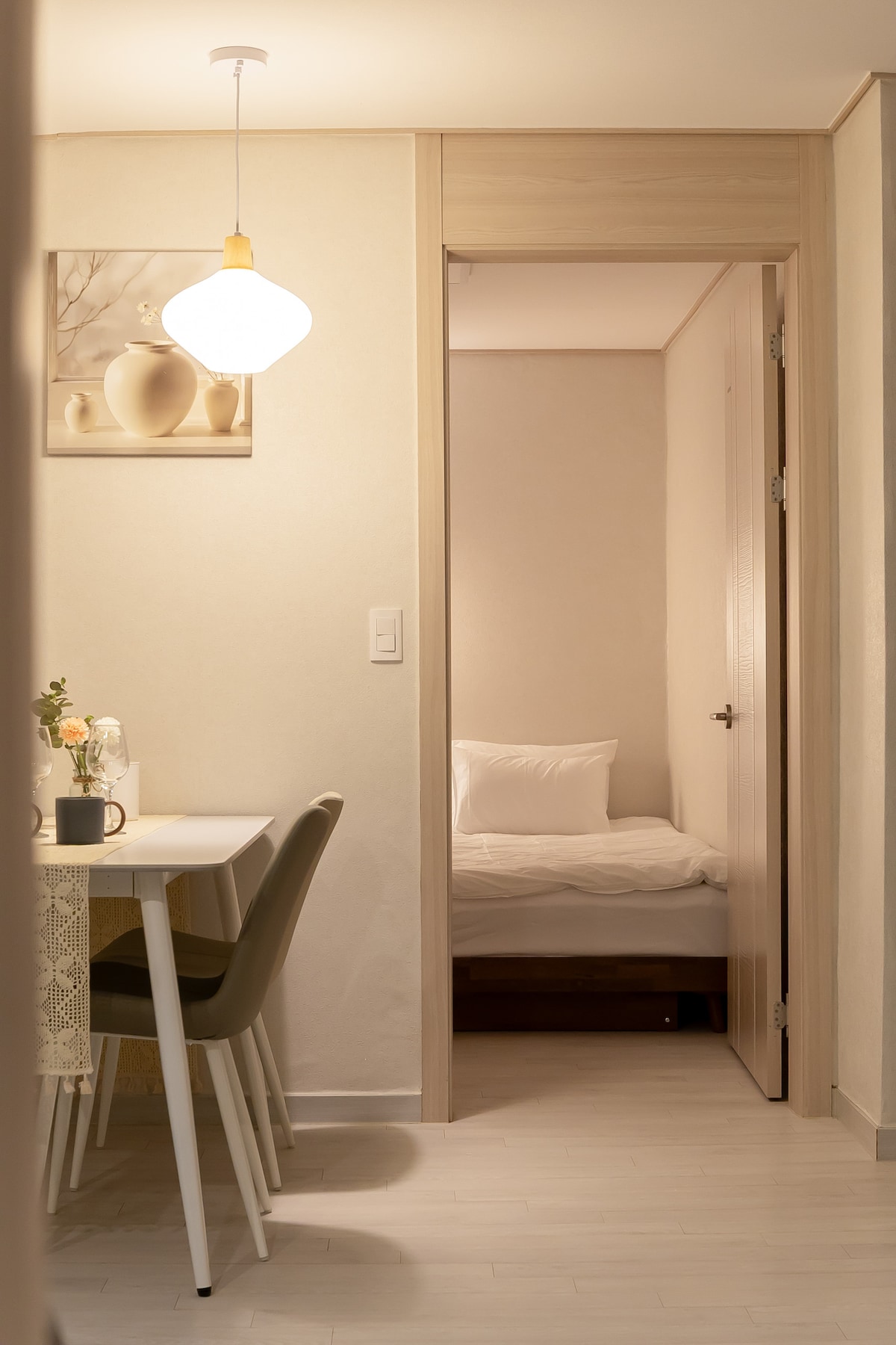 Nel cuore di Seul, dove la città brilla di più di notte: benvenuti a Dongdaemun. A differenza delle strade trafficate all'esterno, il nostro alloggio offre un soggiorno tranquillo e accogliente con caldi toni del legno e luci soffuse: il luogo perfetto per rilassarsi dopo una lunga giornata. - 10-15 minuti a piedi da DDP e Doota Mall - 5-10 minuti a piedi dall'uscita 6 (o dall'uscita 4 per l'ascensore) della stazione Dongdaemun History & Culture Park (linee 2, 4, 5) - Dall'aeroporto: prendere l'autobus 6001 fino alla fermata Baiton Hotel (2–5 minuti a piedi)