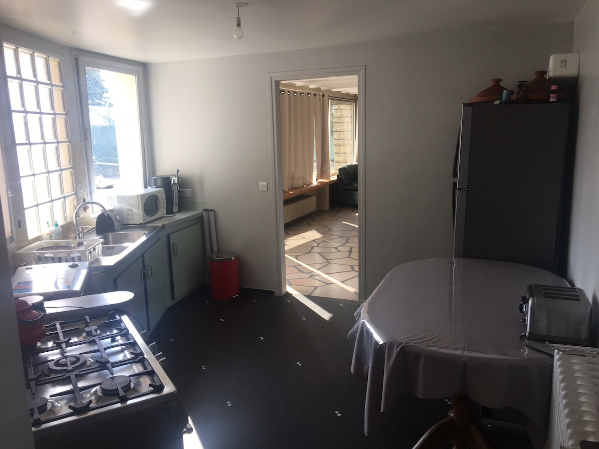 Appartamento in affitto a notte. Cucina attrezzata(forno a microonde, caffettiera, bollitore, tostapane, tostapane, piastre in vetroceramica, frigorifero). Lato soggiorno divano letto TV, wifi. Camera al soppalco letto 140x190 lenzuola fornite. Bagno italiano e asciugamani forniti. Wc indipendente. La prima colazione è offerta. Sarete vicino ai principali siti turistici. A 7 minuti da Sarlat , a 15 minuti dalla grotta di Lascaux. Canoa, castelli, passeggiata in gabarra.