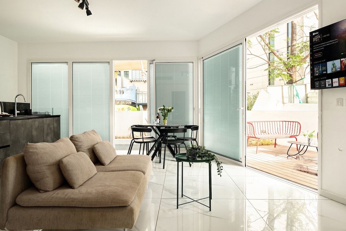 C'è una dimensione nell'edificio accanto. Design unico. L'esperienza definitiva a Tel Aviv è a pochi clic di distanza. Immagina di essere nel cuore di Tel Aviv, vicino ai luoghi più trendy della città. Prenota questo alloggio e non dovrai più immaginare (: Questo è il posto in cui vuoi soggiornare, poiché abbiamo una cucina attrezzata, Wi-Fi ad alta velocità, un soggiorno, un patio privato e una doccia rilassante. A soli 3 minuti a piedi dalla spiaggia e da molti altri fantastici luoghi di Tel Aviv.