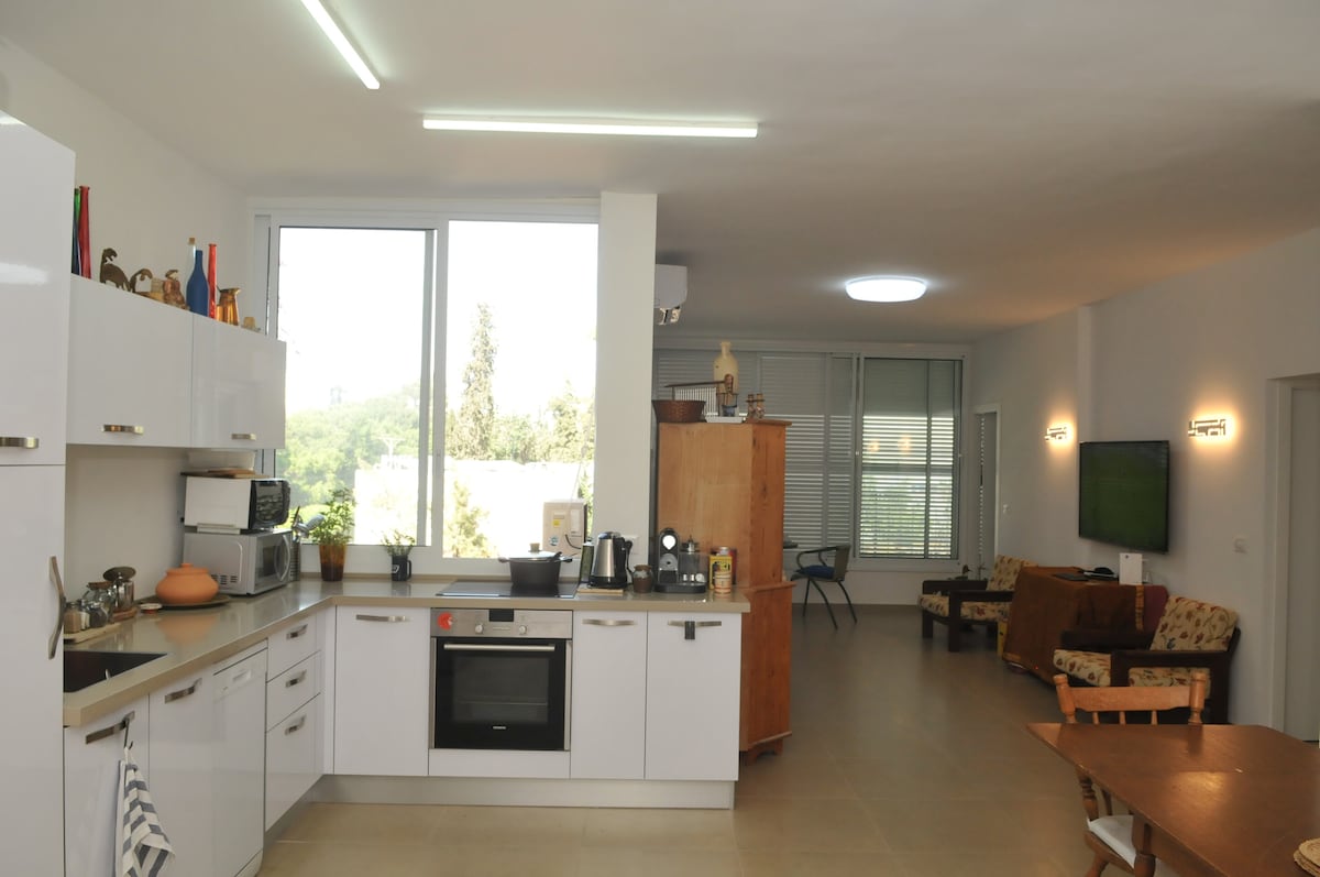 Questo bellissimo attico di 5 camere è situato 5 minuetti in auto dall'autostrada principale che attraversa Israele da nord a sud. Si trova a 15 minuti di auto dalla spiaggia, a 20 da Tel Aviv e a 45 minuti. A Gerusalemme. Ha 4 letti matrimoniali un bellissimo terrazzo di 40 mq. Un ampio soggiorno e una vista mozzafiato. La cucina è completamente attrezzata e include una macchina per il caffè espresso, gli ospiti possono godersi la tranquilla campagna e allo stesso tempo essere a portata di mano da Tel Aviv. I migliori ristoranti e supermercati, sono raggiungibili in 5 minuti a piedi