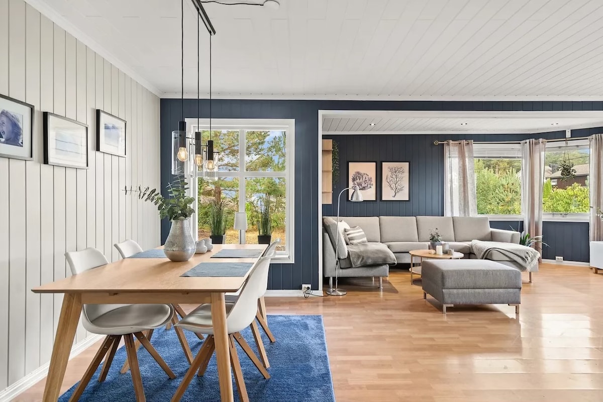 Bella casa con tanto spazio per tutta la famiglia. 4 camere da letto, 2 bagni, 2 salotti. La cucina è aperta con ampio tavolo da pranzo per 10-12 e bar. Il giardino ha spazio per giocare e rilassarsi. Qui puoi trovare trampolino e amaca. Terrazza coperta con tavolo da pranzo/mobili da giardino e terrazza aperta con grande tavolo da pranzo e barbecue, con noi tutti i pasti possono essere consumati all'aperto (durante l'estate).