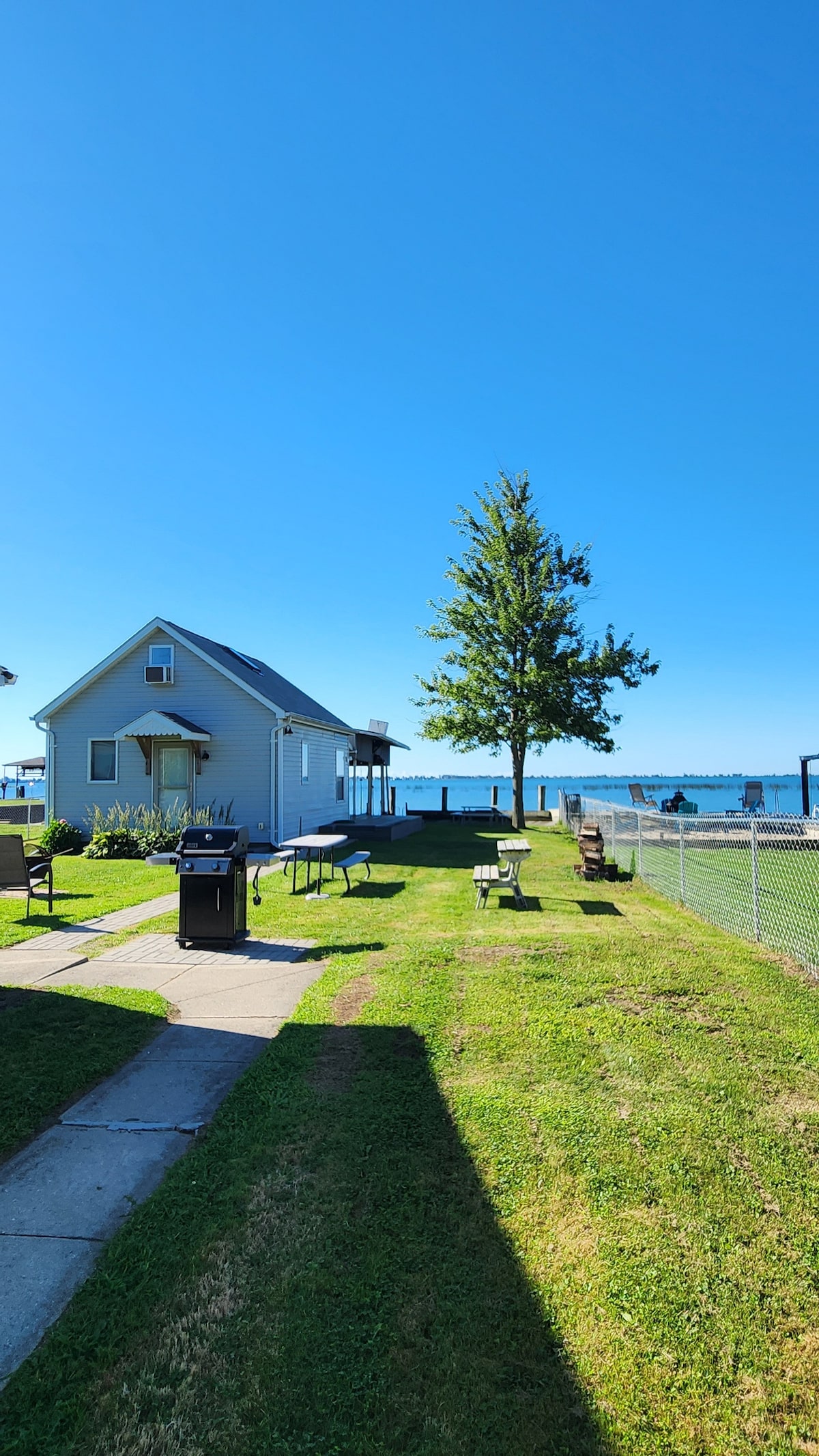Accogliente cottage fronte lago con 2 camere da letto e 1 bagno ad Anchor Bay, può ospitare 4 persone. Completamente ristrutturato con una cucina completamente attrezzata, nuovi elettrodomestici, pavimenti, armadi e TV. Goditi splendidi tramonti dal ponte, attracca la tua barca al molo di 12 metri o usa il kayak e l'attrezzatura da pesca forniti. Perfetto per la pesca, la nautica o il relax, questo incantevole cottage offre la vacanza ideale sul lago St. Clair con comfort e vista sul mare.