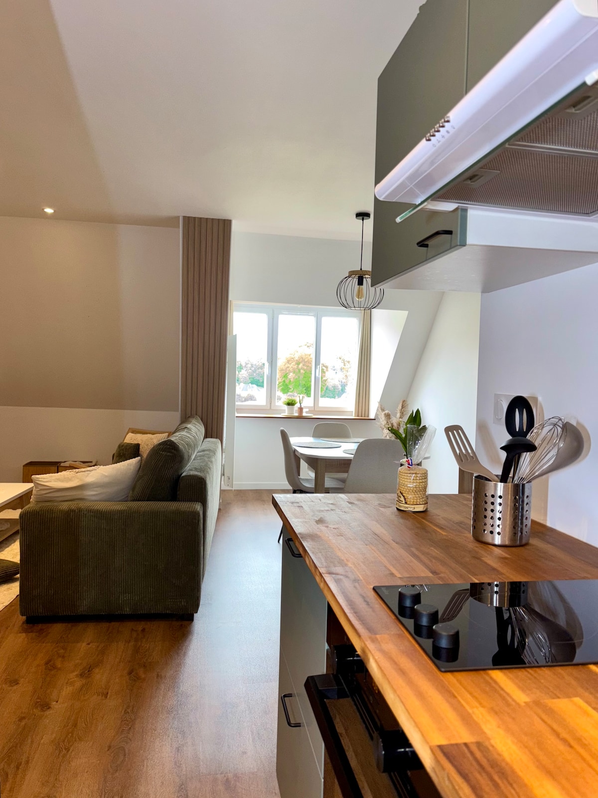 Situato nel cuore di Falaise vicino al centro della città, al mercato, ai negozi, al liceo, alla scuola di musica e alle strutture dedicate allo sport, bellissimo appartamento tipo loft che unisce il fascino dell'antico e del moderno. Completamente ristrutturato è composto da un soggiorno con TV a led e divano letto, una cucina arredata e attrezzata (forno, piano cottura, cappa, forno a microonde, macchina per il caffè con filtro) zona pranzo, una zona notte con letto 140 cm, un bagno. A disposizione lettino, seggiolone. Parcheggio di fronte all'edificio