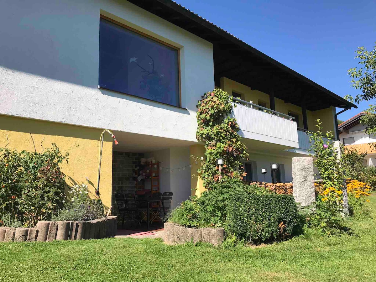 Offriamo nella nostra ex stalla recentemente ristrutturata un alloggio semplice ma dotato di tutto di 44 mq per ospiti semplici. Il nostro agriturismo è situato in un ambiente tranquillo e bello. Gestiamo un'agricoltura biologica con mucche, galline, cavalli e gatti. Il nostro giardino invita a soffermarsi e in caso di pioggia c'è un posto a sedere coperto. Per un bambino è disponibile un divano letto, è possibile ospitare anche un lettino da viaggio. Benvenuti!