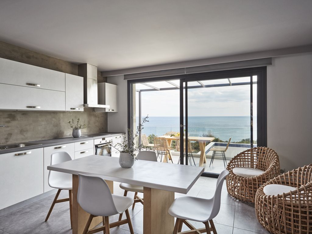 Questa lussuosa villa con 3 camere da letto è progettata per offrire agli ospiti tranquillità, all'interno e all'esterno. Vanta una vista impareggiabile sul mare dal comfort della sua terrazza con piscina privata, mentre al chiuso l'atmosfera completamente climatizzata delle linee minimal e raffinate e lisce imbiancate e motivi eclettici sono assolutamente rilassanti.