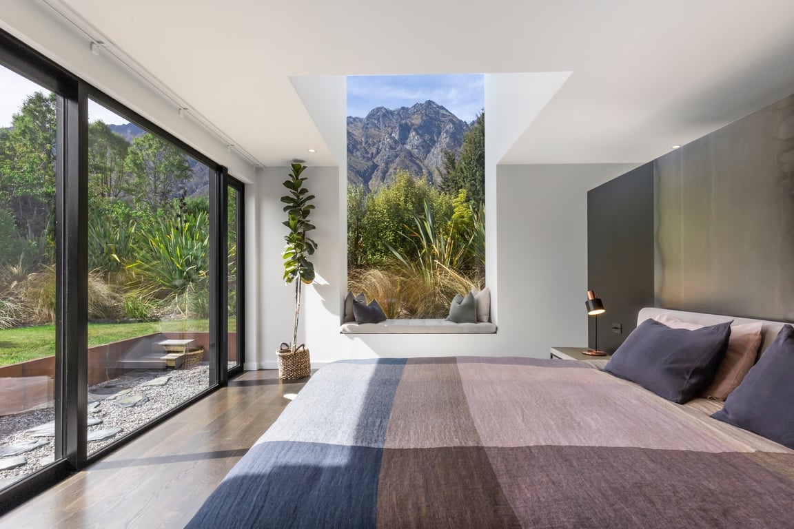 No.8Queenstown incluso nella Guida della Nuova Zelanda 12 dei migliori soggiorni unici nell'Isola del Sud. Situata sopra la scintillante distesa del lago Wakatipu, questa raffinata residenza privata offre un'elegante fuga progettata esclusivamente per le coppie in cerca di tranquillità e bellezza. Arredato con cura e architettonicamente in sintonia con i suoi straordinari dintorni, questo rifugio abbina il lusso minimalista al dramma panoramico. Le ampie finestre offrono una vista mozzafiato sul lago e sulle montagne in ogni angolo dello spazio.