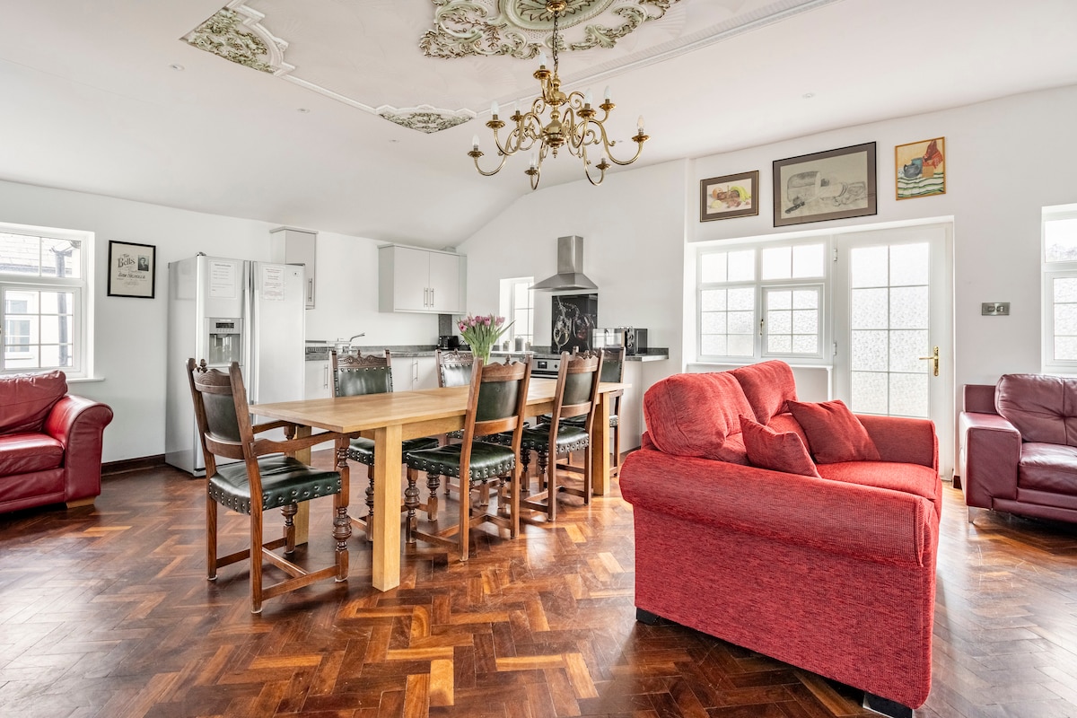 Ristrutturato di recente, questo fienile convertito, noto come Coach House, presenta uno stile contemporaneo di fascia alta, con vasca in rame, vasca idromassaggio da giardino, riscaldamento a pavimento e zona pranzo all'aperto. La rimessa vanta una ristrutturazione privata a due piani con parcheggio, due bagni, bagno turco e una splendida scala in acciaio. Casa di Ollie Palmer, benvenuto a Wrexham:) Può ospitare fino a 4 persone e dispone di una cucina per essere autosufficienti. Situato a 2 km dal Wrexham (centro città) 📍