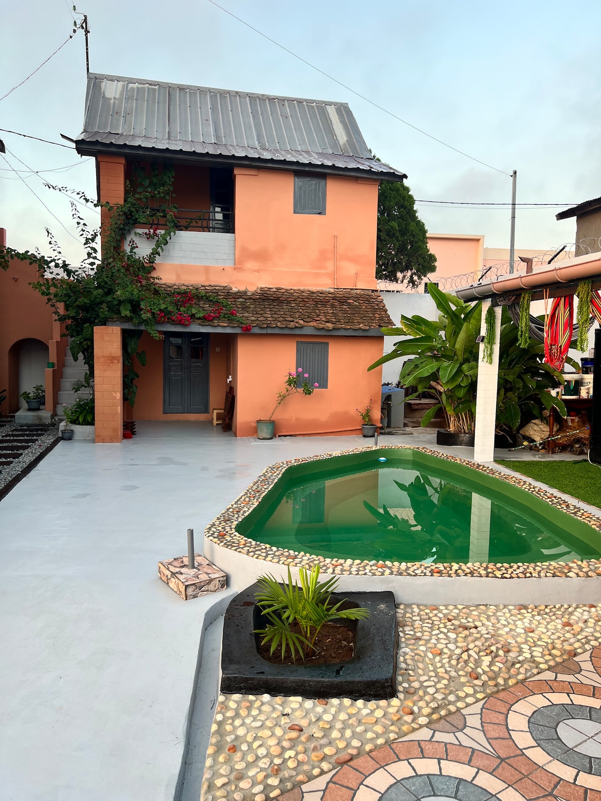 Our place is very well located close to the gas station, market supermarket, all the facilities like pharmacy, taxi station. The property is having a 24/7 security guard cameras for your safety. Equipped with panel solar.