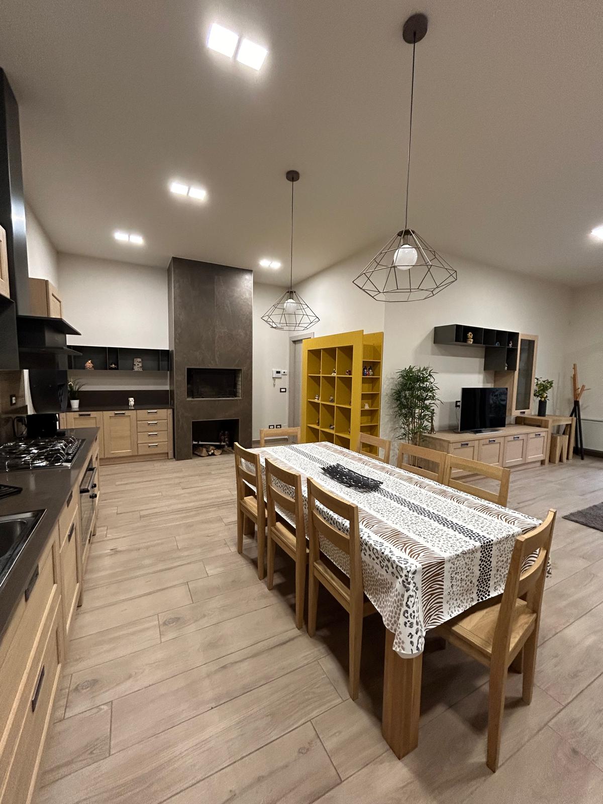 Tipica casa di montagna al 3° piano sul lato panoramico ma al piano strada dal lato d'ingresso, con giardino, balcone e parcheggio privato. Situato all'ingresso del paese, gode di una splendida vista ed allo stesso tempo ha un ingresso che dista solo 100m dal centro del paese I 2 soppalchi in legno la rendono la tipica residenza di montagna e ospitano ciascuno 1 letto matrimoniale extra Al primo piano 2 camere da letto con 1 letto matrimoniale ciascuna soggiorno, angolo cottura, camino e bagno