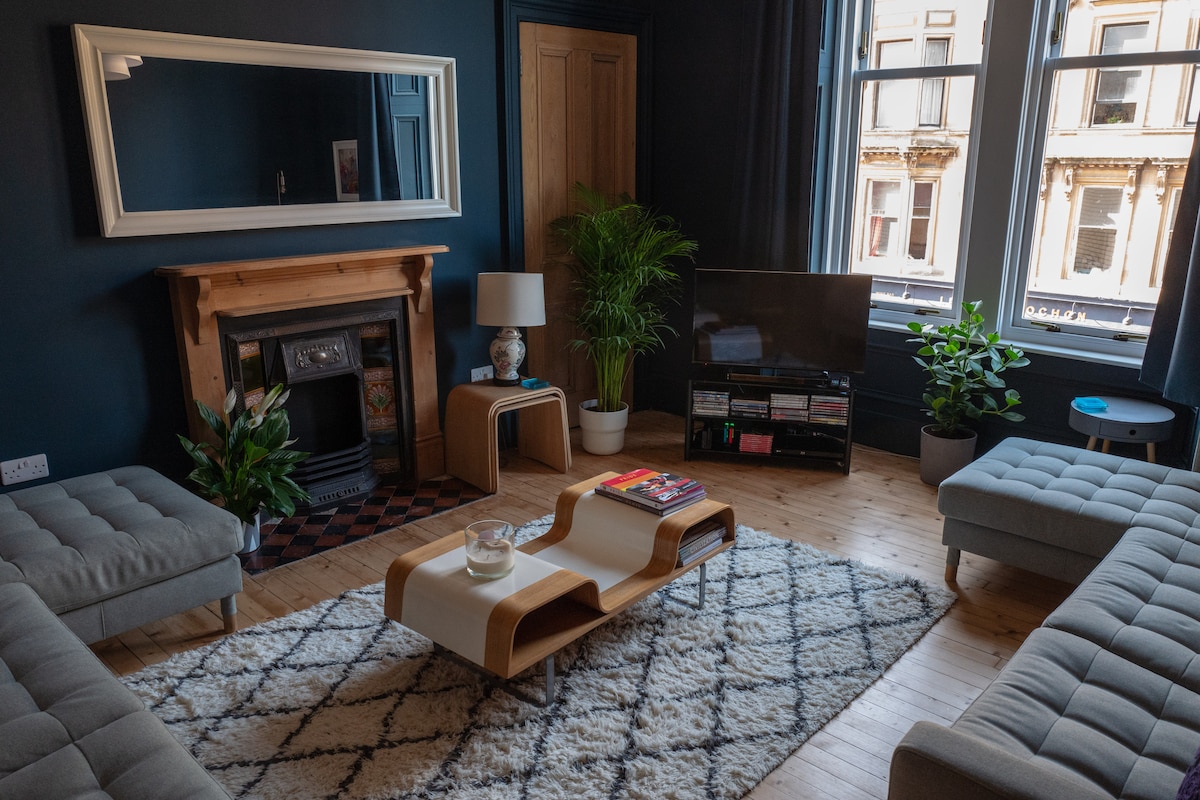 Saremo lieti di darti il benvenuto nella nostra casa, un appartamento accogliente ed elegante nella posizione perfetta per scoprire e goderti il meglio di Glasgow. Nel cuore di Finnieston, con vista sull'Università di Glasgow e sul museo Kelvingrove, il nostro appartamento è stato recentemente ristrutturato, il che significa che tutto, dai mobili alle lenzuola, è fresco e pulito per gli ospiti. C'è anche un armadietto dei giochi e un bar self-service pieno di bevande. Igienizziamo accuratamente tra una prenotazione e l'altra e mettiamo a disposizione gratuitamente disinfettante antibatterico.