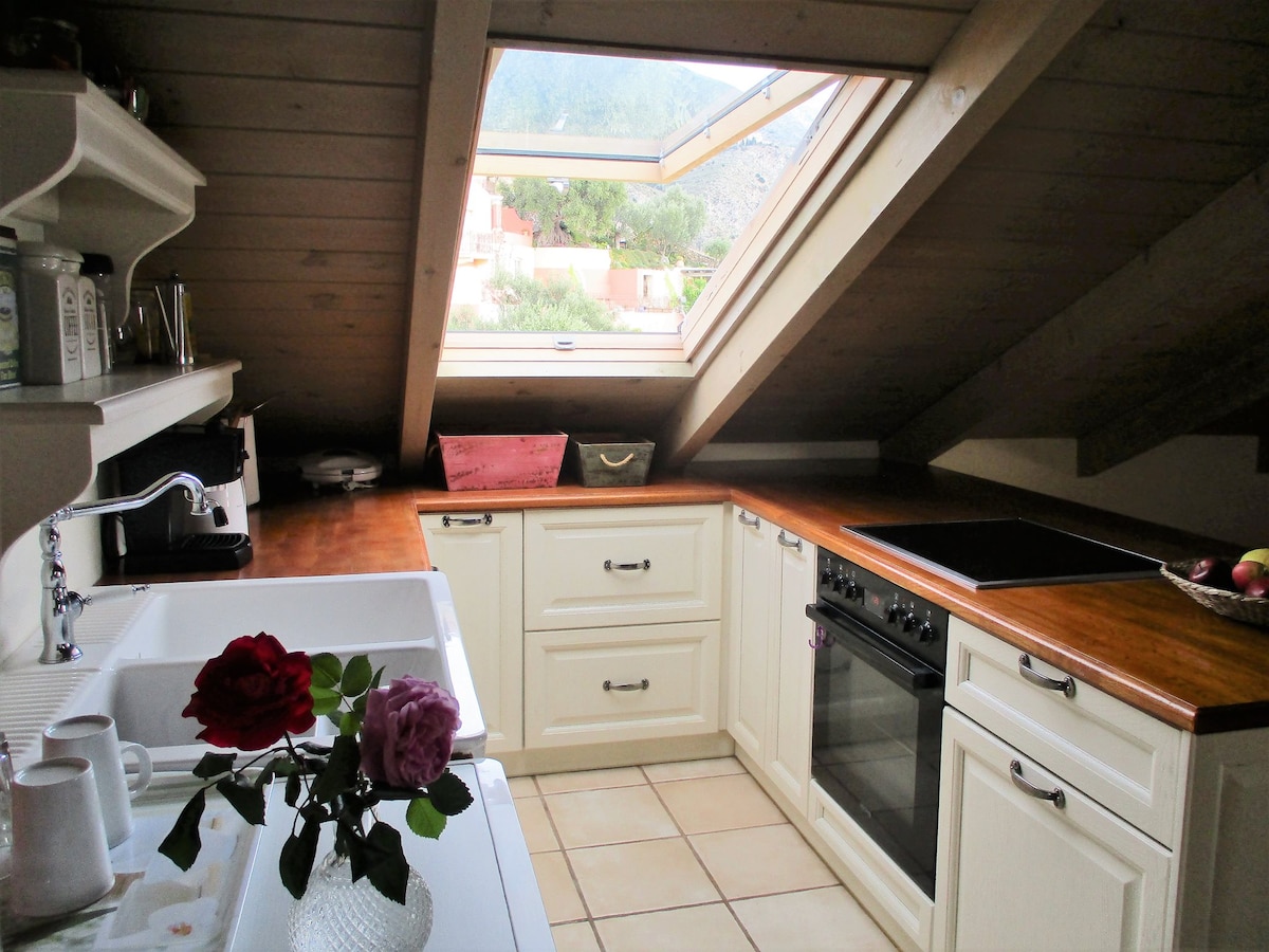 Our loft is situated on the top floor of the charming guest house Cavos Inn, in the picturesque village of Assos just 5 minutes walk from the beach. Designed to provide a seamless blend of comfort and style, featuring a double bed, a fully equipped kitchen, bathroom and a living room all in one single space, with beautyfull views from the windows to Myrtos Bay and Assos. Please note no balcony. You may relax any time at the main terrace and enjoy the breathtaking views that unfold before you.