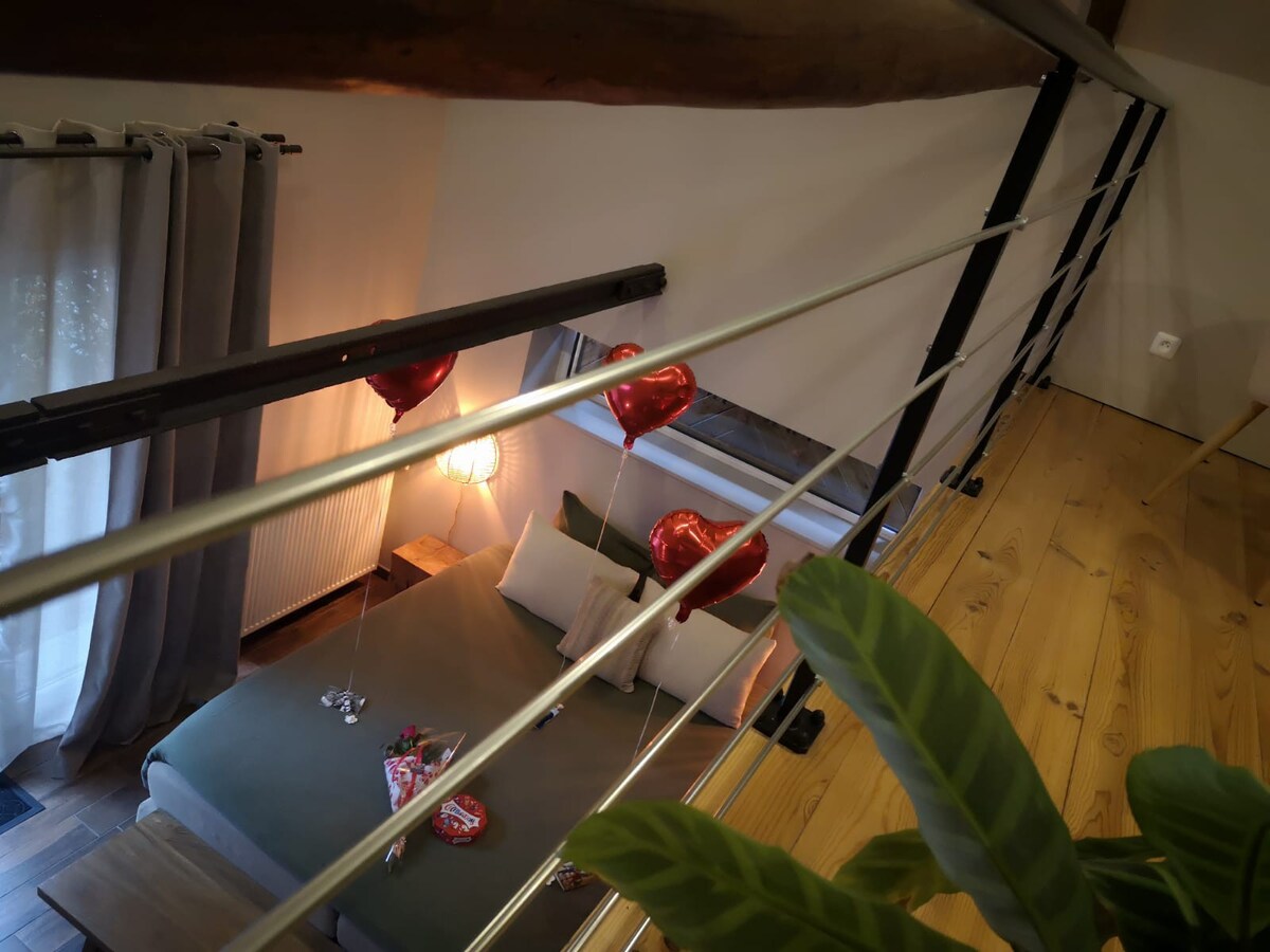 "Il mio piccolo Paradiso" 🤍 Sono per così dire una casa rilassante dai colori tenui e armoniosi, arredata con graziosi materiali grezzi e naturali, impreziosita da decorazioni fatte a mano venute da altrove 🤎 Un luogo che mescola grande comfort, calma, bellezza e semplicità ~ ispirato al concetto di Wabi Sabi. ️Jacuzzi: vasca da bagno a 2 posti sdraiati SENZA IDROMASSAGGIO 🛁 { foto "grandangolo" ~ superficie precisa piano terra + soppalco: 45m2 }