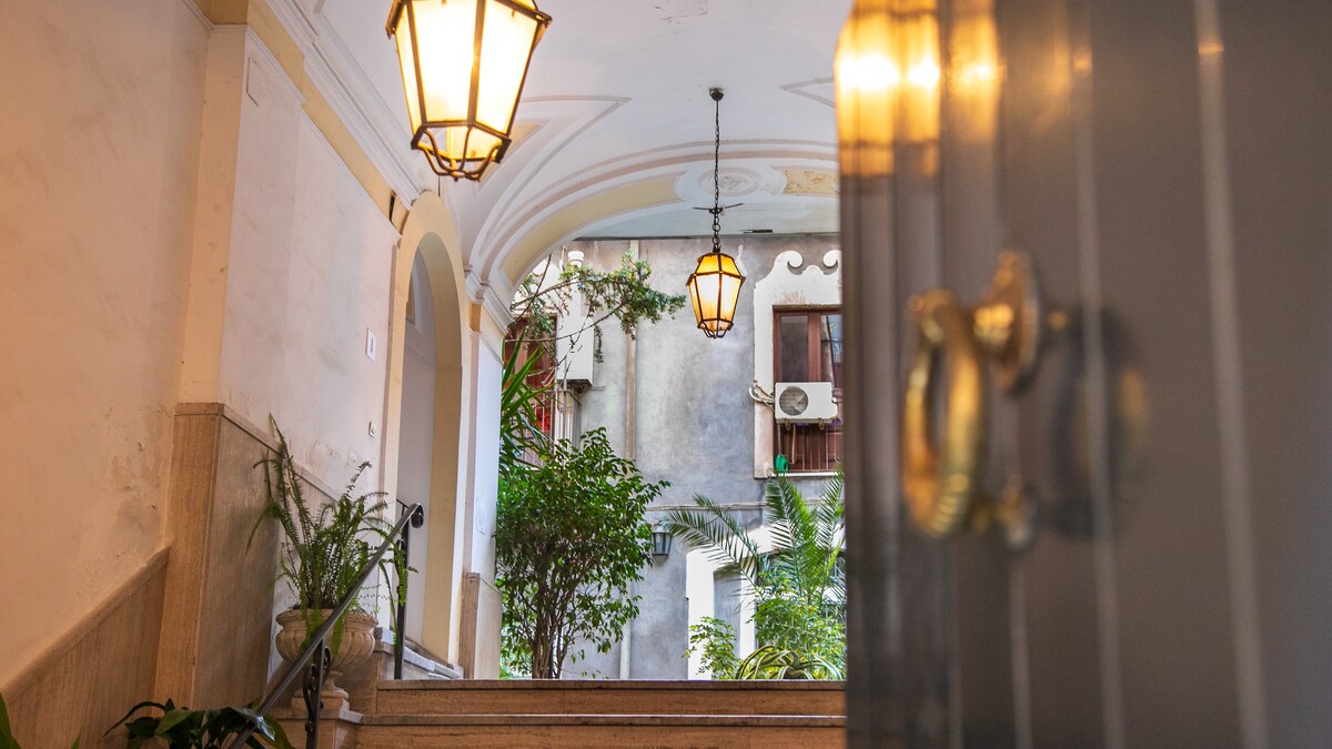 Elegane appartamento situato al primo piano di un palazzo nobiliare dell'800 nel cuore del Centro Storico e della movida Catanese, il luogo ideale per chi ama godersi la vacanza a 360° potendo ammirare con facilità la storia, l'arte e la cultura associando il divertimento e il mare che si trova a soli 10 minuti di strada, ben collegato ai mezzi di trasporto (bus, metro, stazione e aeroporto) supermercati e mercato rionale proprio dietro casa. Parcheggio custodito proprio dietro la struttura.