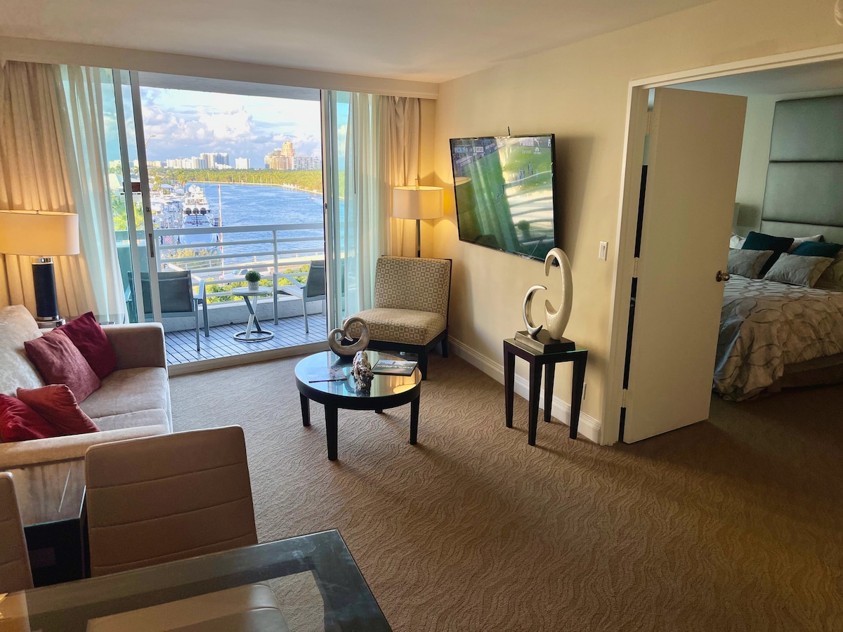 Appartamento a 5 stelle di Hilton, a Fort Lauderdale, è la location perfetta per la tua prossima vacanza al mare nel Sud della Florida. Il nostro alloggio offre un eccellente balcone con vista sull'Inter Coastal e sul ponte che si apre dai migliori yacht. A breve distanza dalla spiaggia di Fort Lauderdale, dal centro commerciale, dalla fermata del taxi acqueo Fort Lauderdale all'Apart Hotel, dalla piscina di fronte all'acqua gratuita, dalla vasca idromassaggio e dalla palestra. La nostra suite. Suite deluxe dispone di 1 letto king-size e 75' Smart TV 4K.