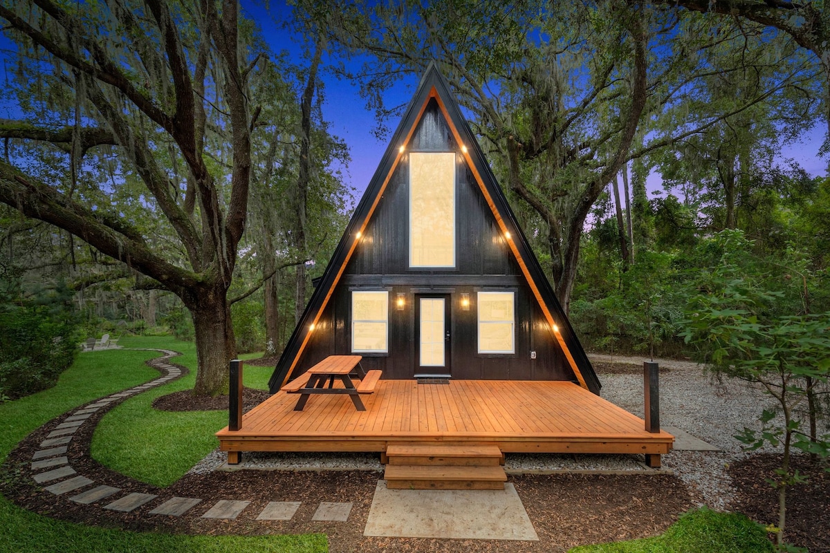 Escape to our cozy A-frame cabin, nestled amidst the serene beauty of nature. Just 10 mins from Santos Trailhead and 35 from Rainbow Springs! After a day of exploration, unwind in the private hot tub, gather around the bonfire pit for s'mores, or snuggle by the fireplace and stream your favorite movie. Whether you seek a romantic retreat or an extended family getaway, our A-frame cabin promises the perfect blend of nature's tranquility and modern comfort!